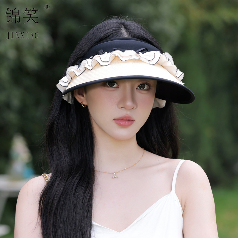 アウトドアの新しいインターネットセレブかわいい年齢軽減夏の女の子の紫外線防止大きなつばの黒いビニール板空のトップハットサイクリングサンシェード