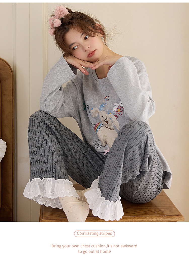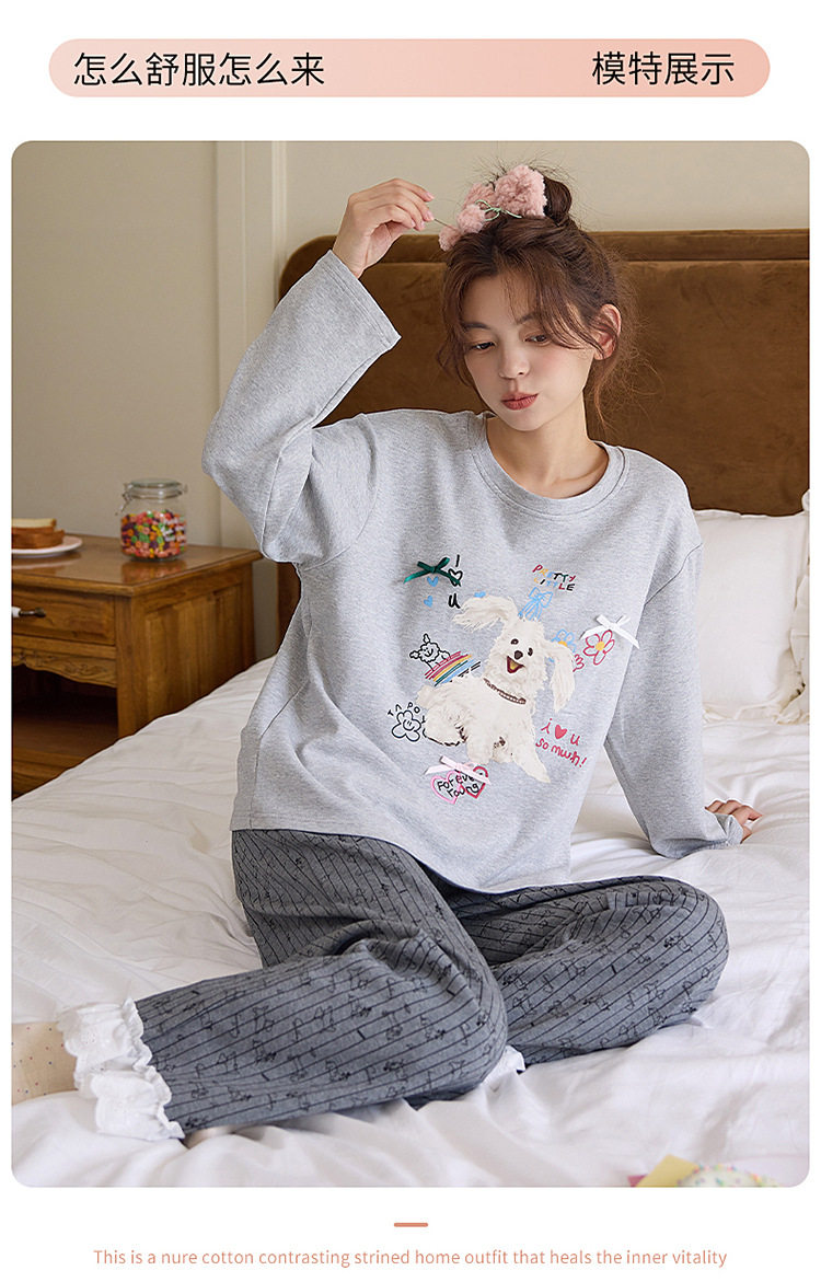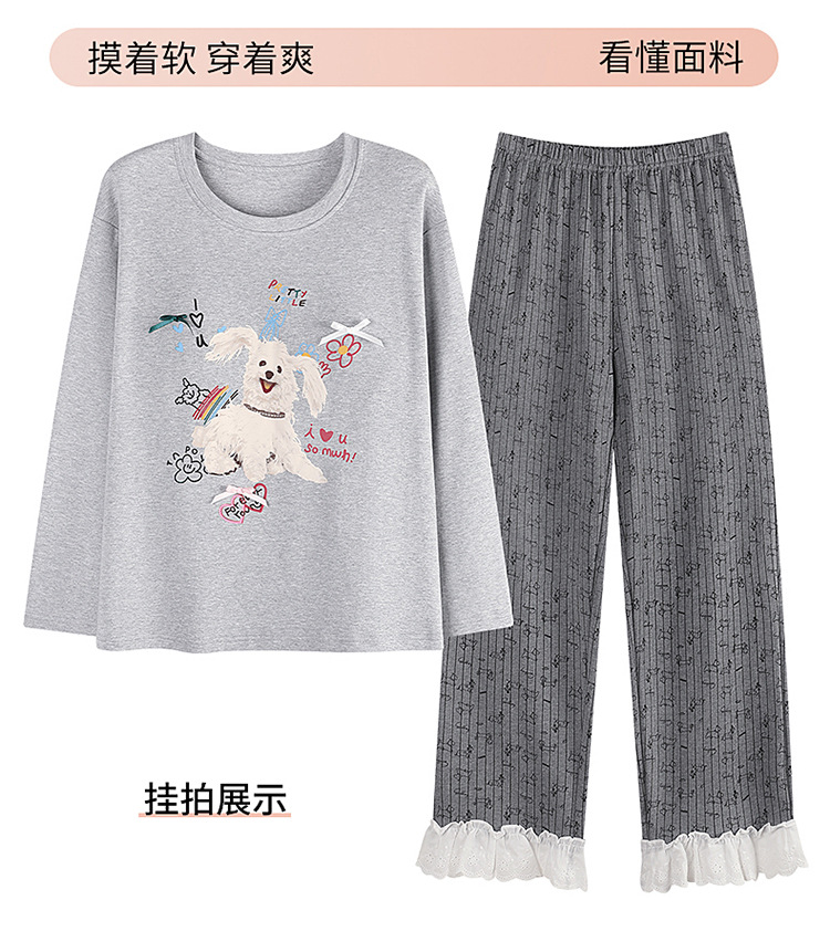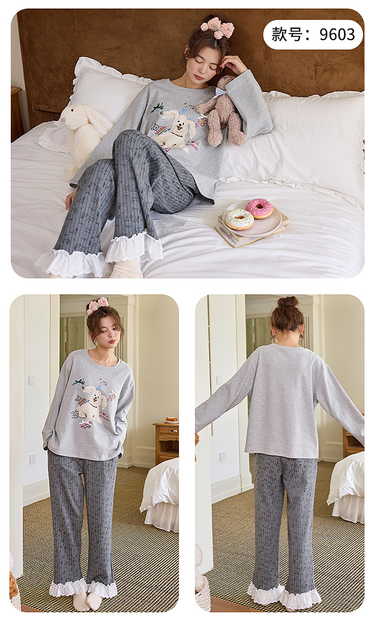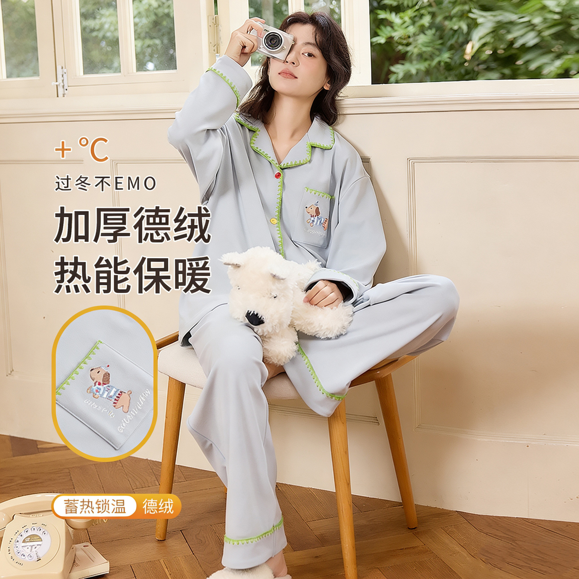卡通小狗秋冬季睡衣女长袖加厚德绒保暖可爱甜美少女家居服可外穿