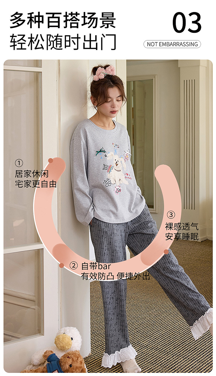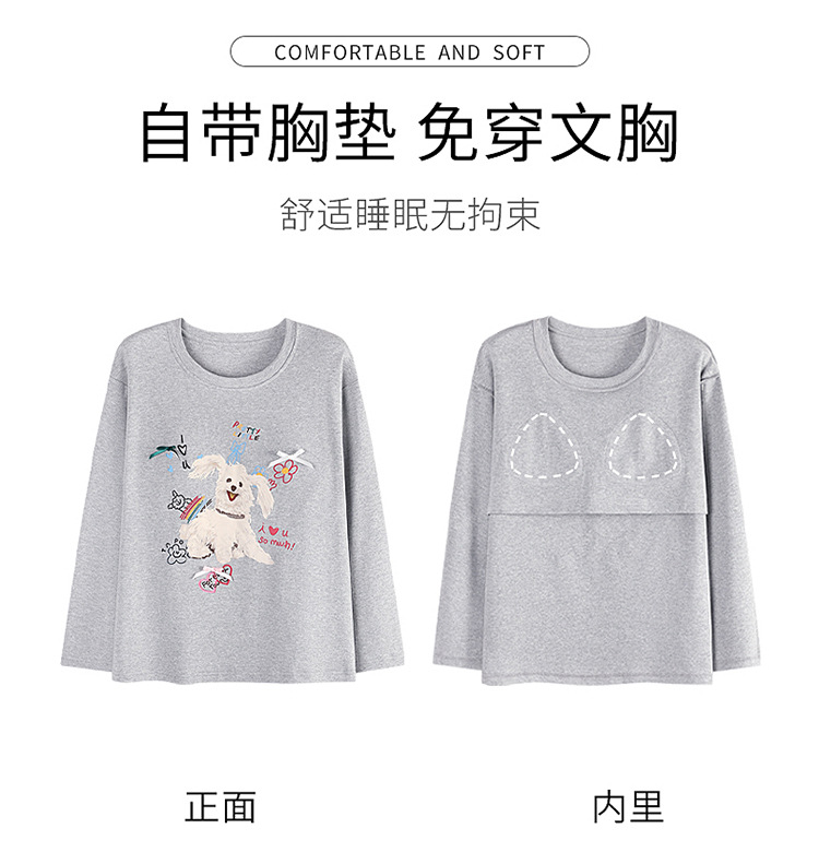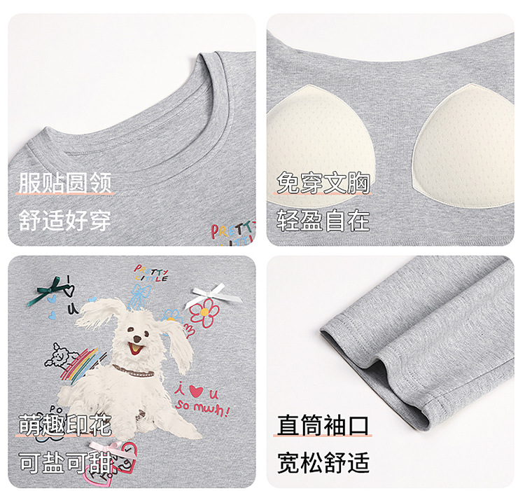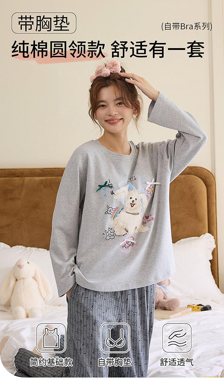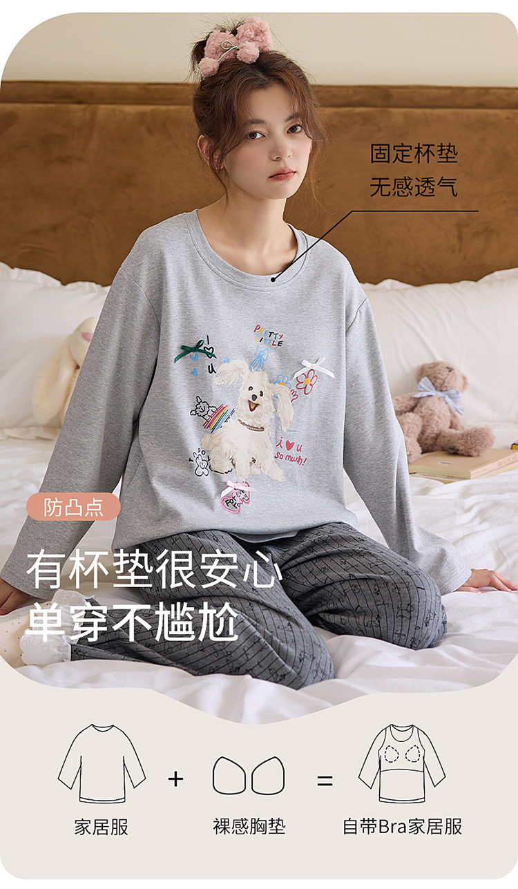純綿パジャマ女性春秋タイプの胸パッド付き一体外着アニメのゆったりした家庭服セット2024新型