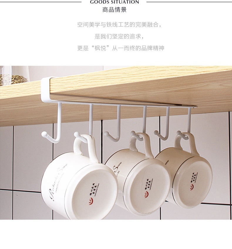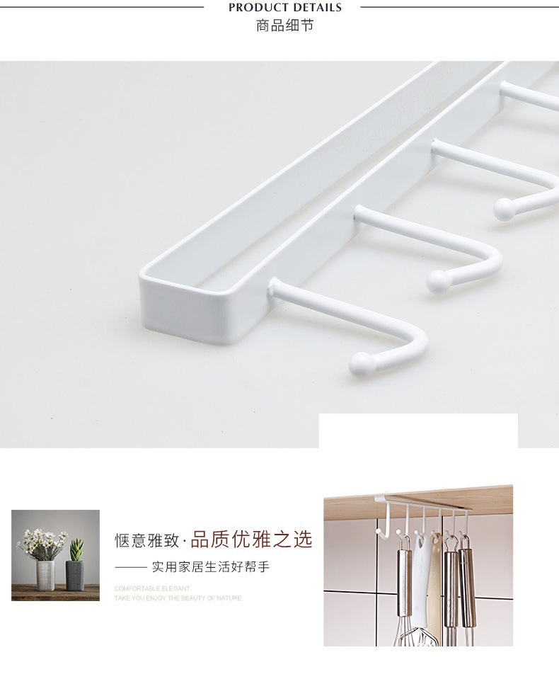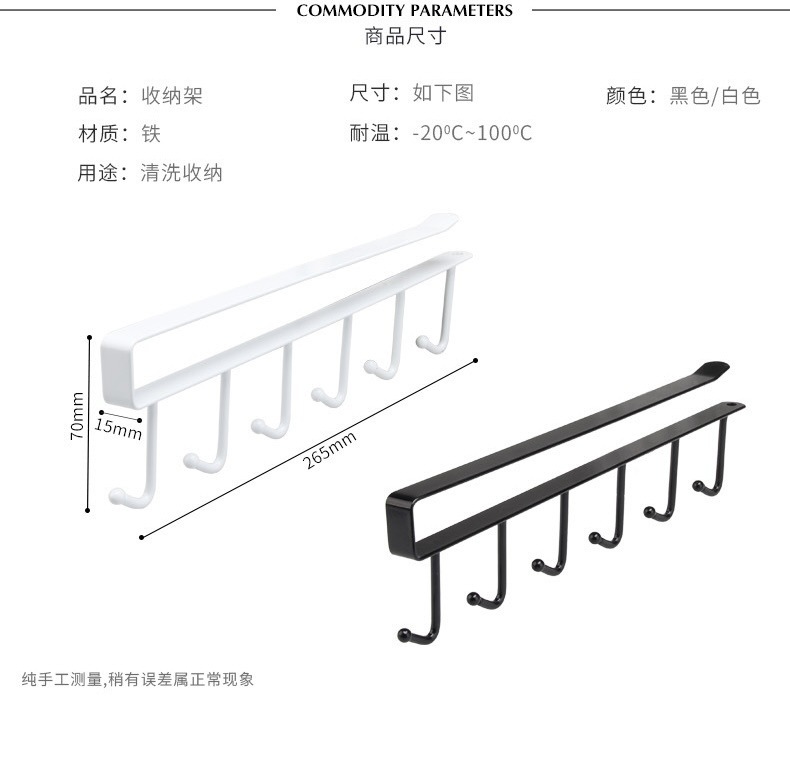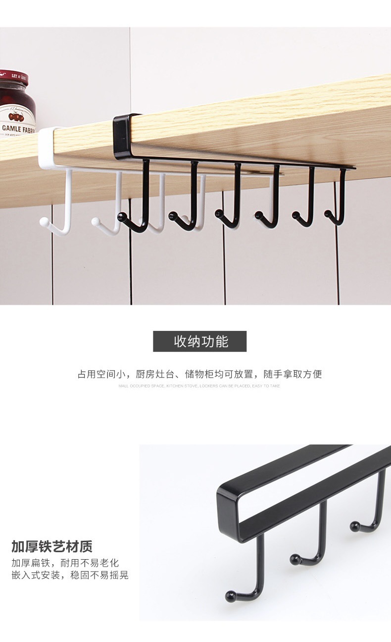 铁艺橱柜下收纳挂架免打孔多功能排钩衣柜置物架神器厨房无痕挂钩