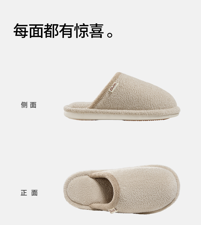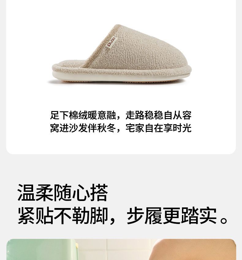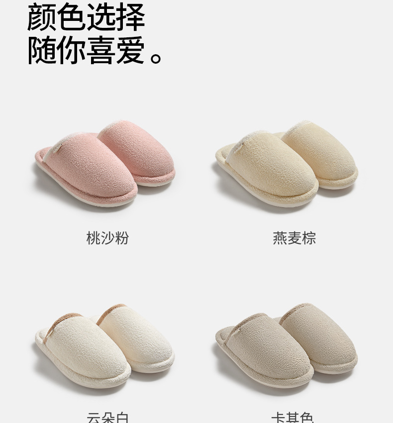 朴西程也女士棉拖鞋纯色毛绒保暖情侣棉拖男室内家居防滑舒适棉拖