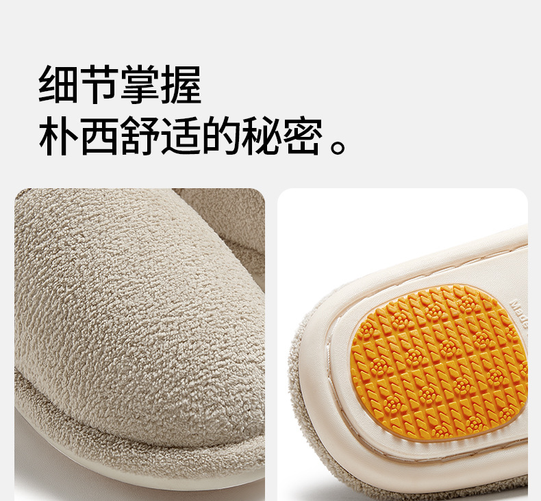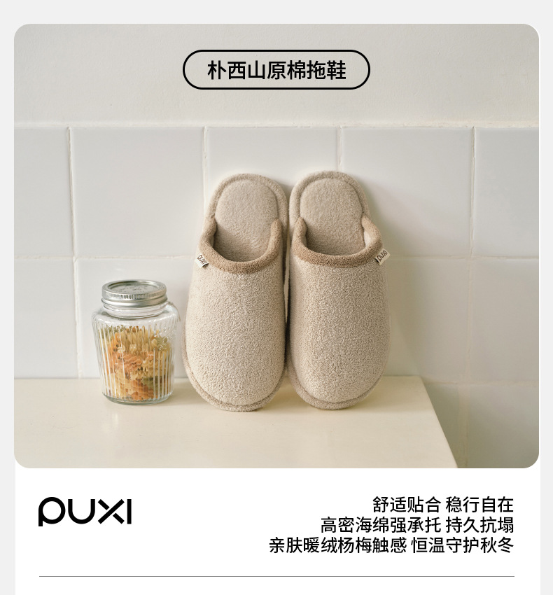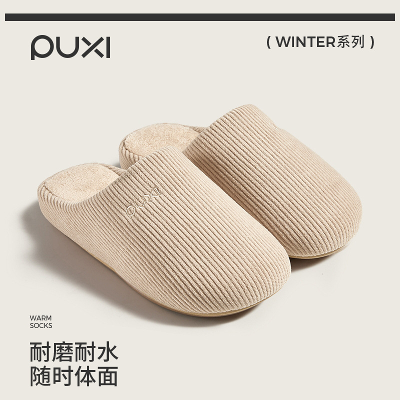 朴西山原棉拖鞋女款秋冬季家居室内防滑耐磨保暖静音情侣毛绒拖鞋