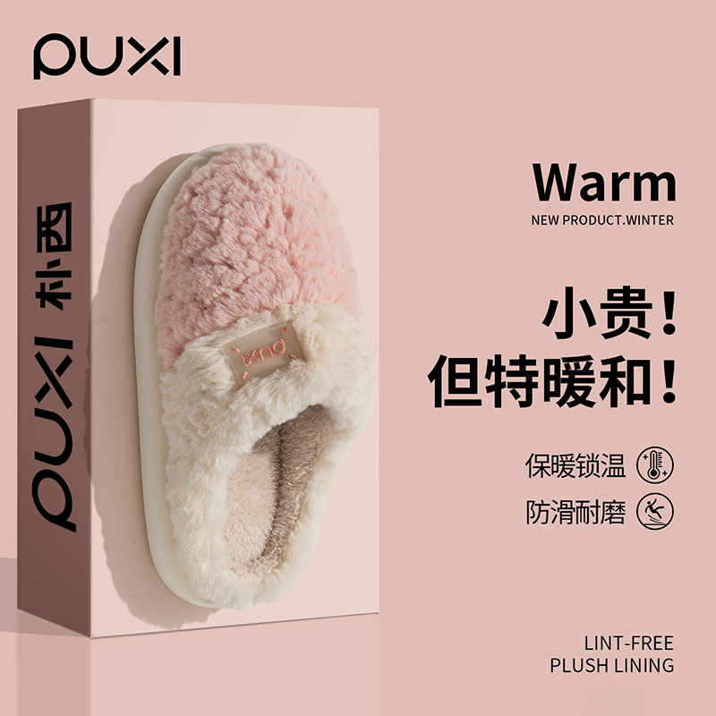 PUXI朴西工厂批发新款毛拖鞋防滑透气加厚保暖家居拖鞋包头冬拖鞋