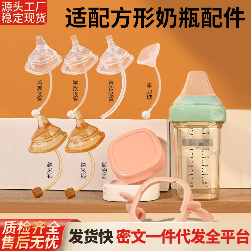 适用于赫根奶瓶配件方形奶嘴鸭嘴学饮嘴水杯吸管重力球手柄套装