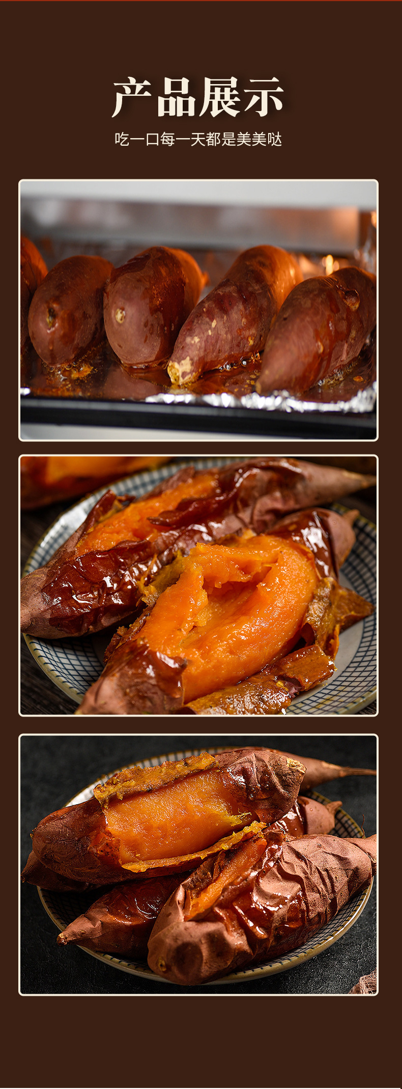 包装规格 烟薯 净重1斤小果,烟薯 净重3斤小果,烟薯 净重3斤中大果,烟薯 净重5斤小果,烟薯 净重5斤中大果,彩箱烟薯 净重5斤中大果,烟薯 净重9-9.5斤中果,烤块 净重9-9.5斤大果(0.8-1.5斤/根)