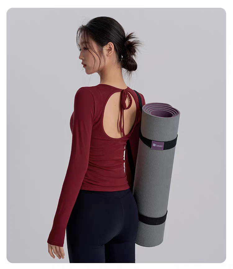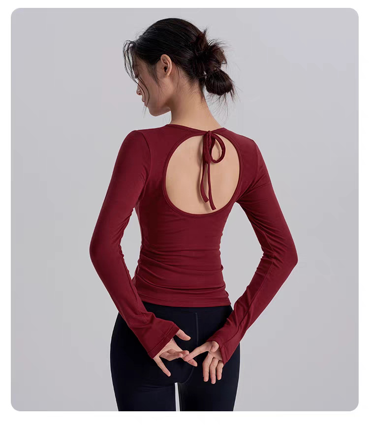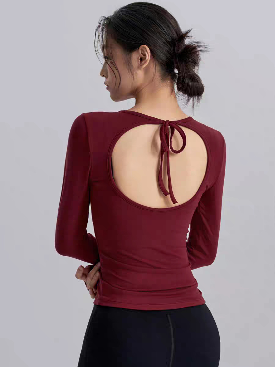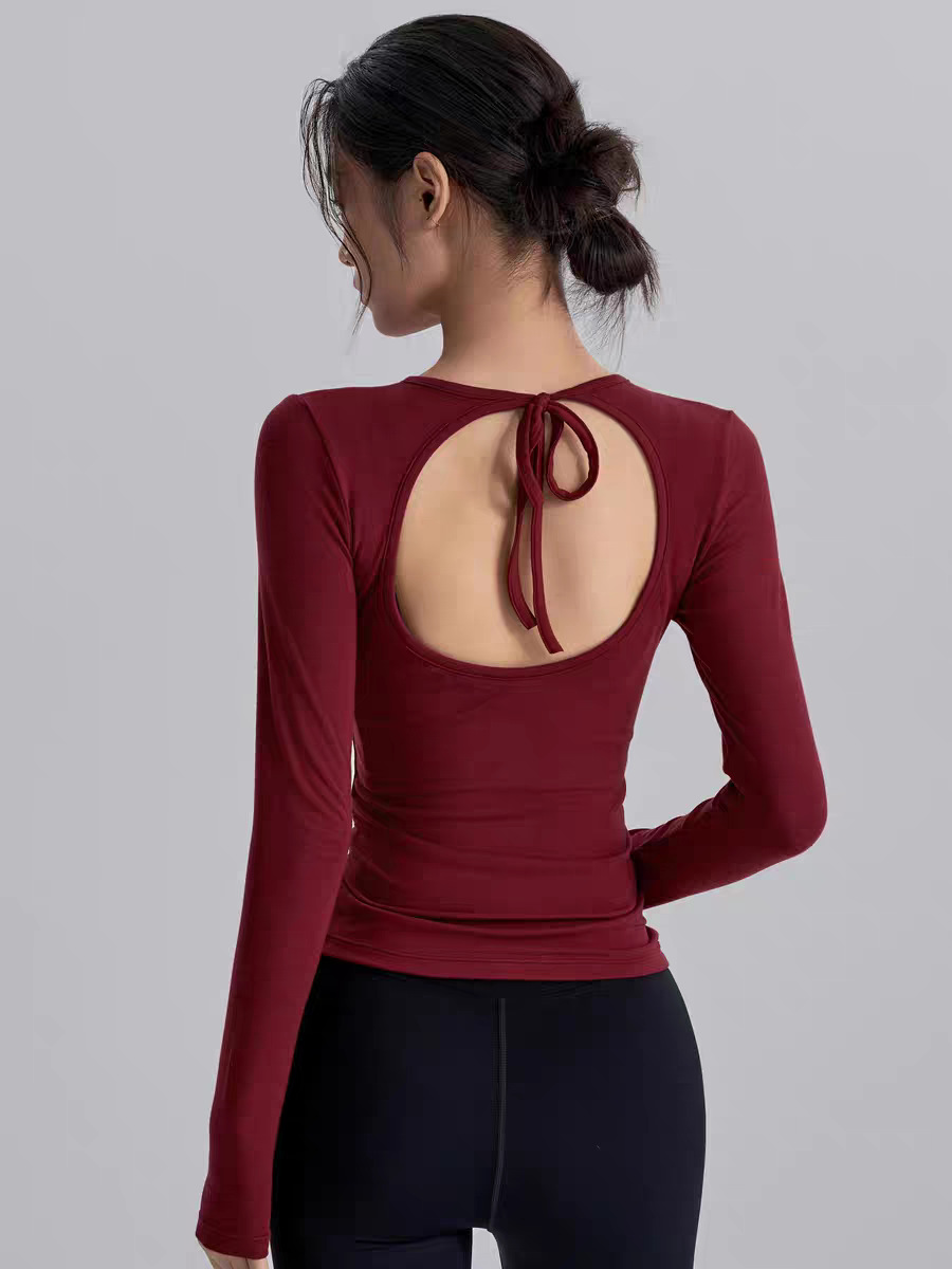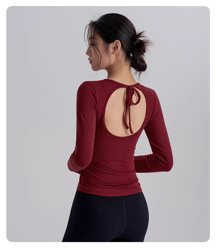 露背绑绳带胸垫运动上衣女高级感普拉提瑜伽服外穿速干健身长袖T
