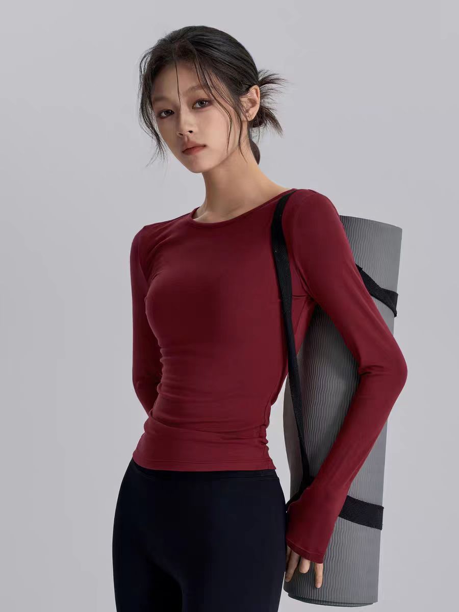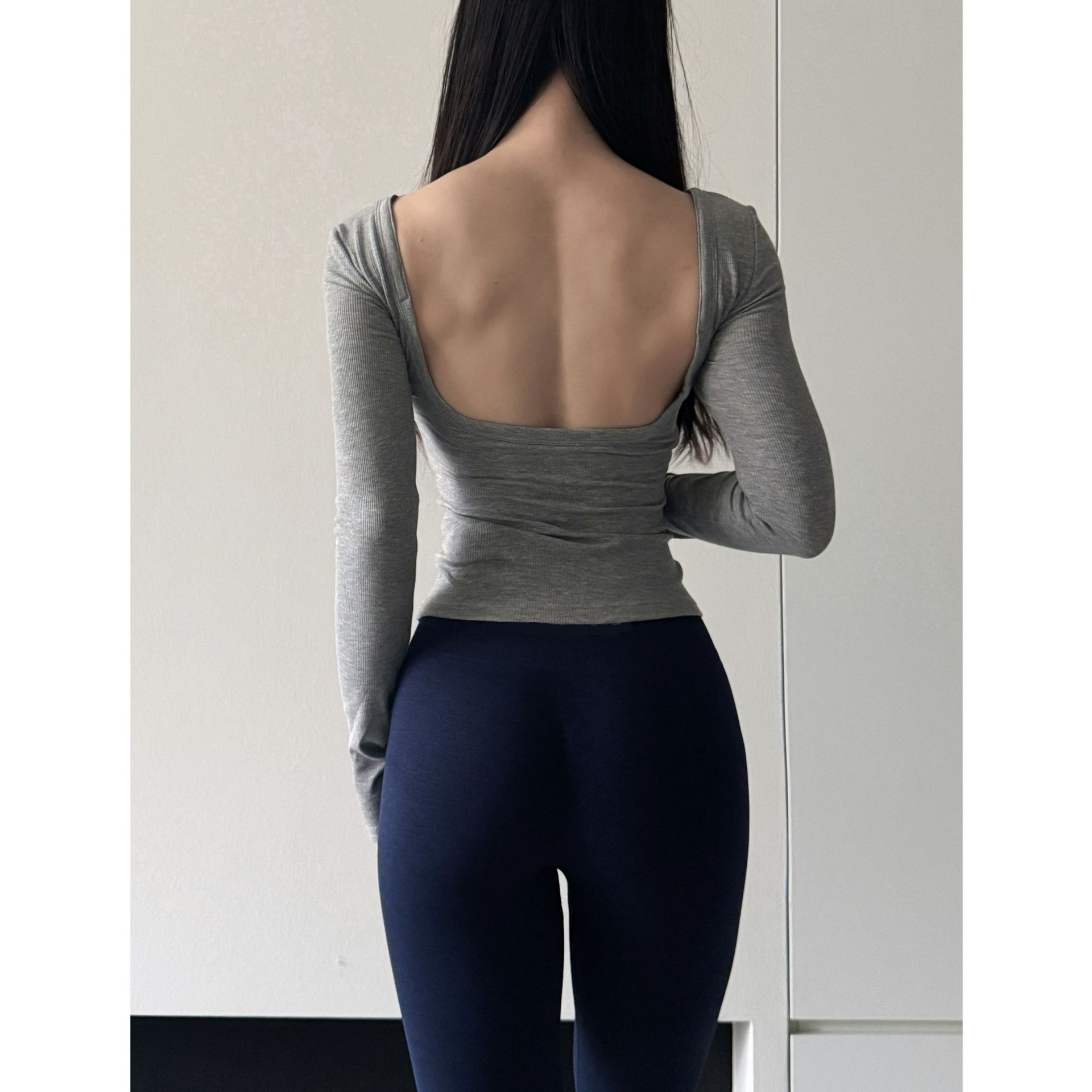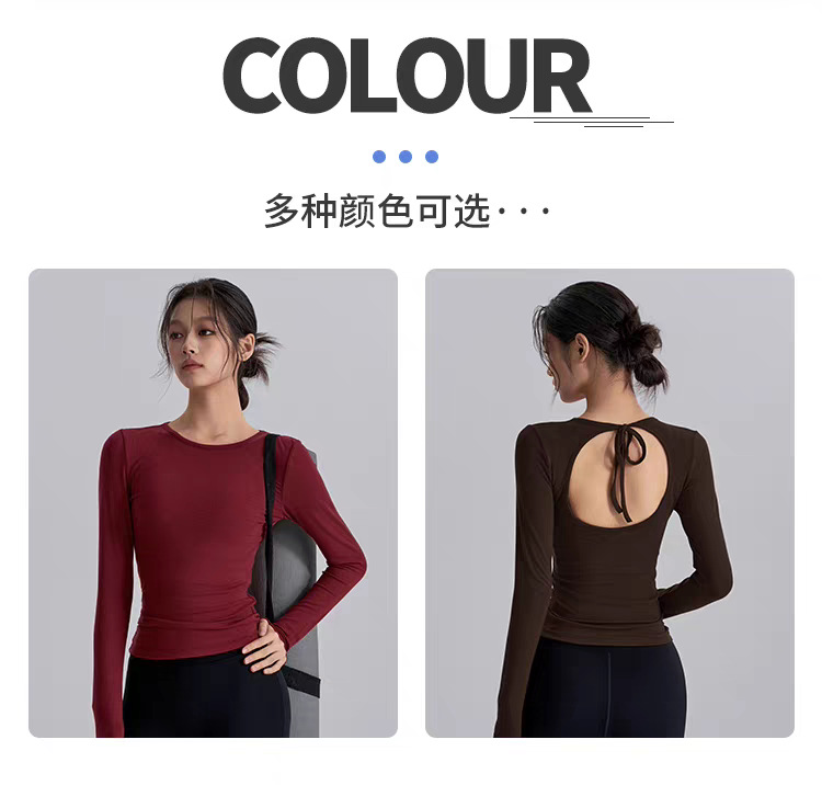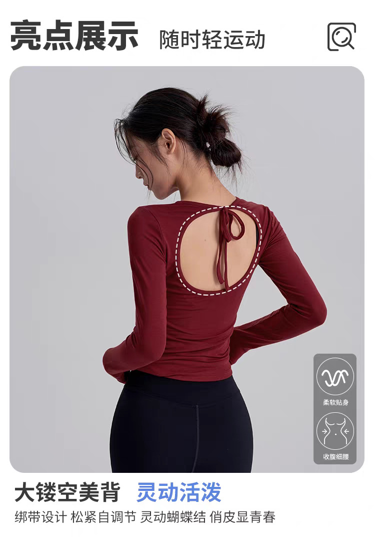 露背运动上衣高级感普拉提瑜伽服外穿速干春秋季圆领长袖修身