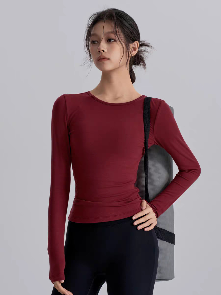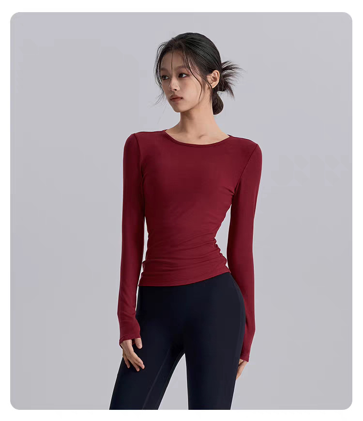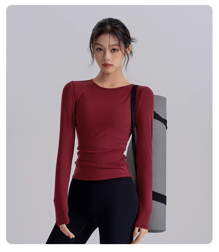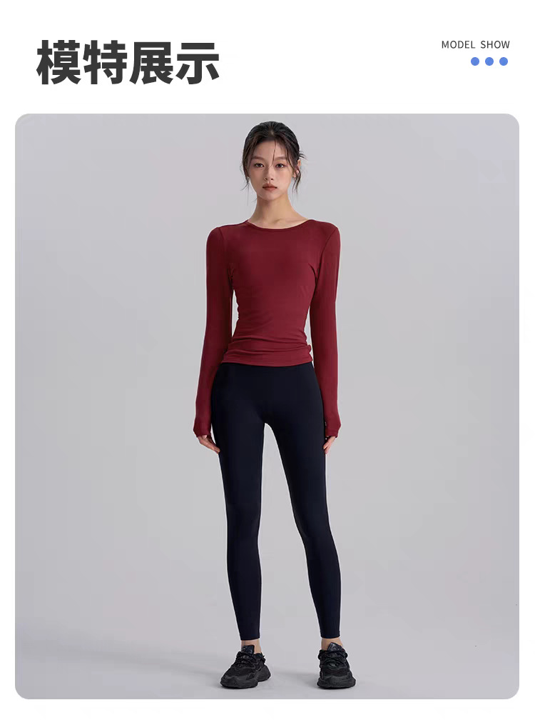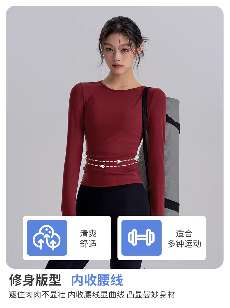 秋冬修身显瘦跑步透气瑜伽服修身长袖女运动上衣圆领普拉提跑步