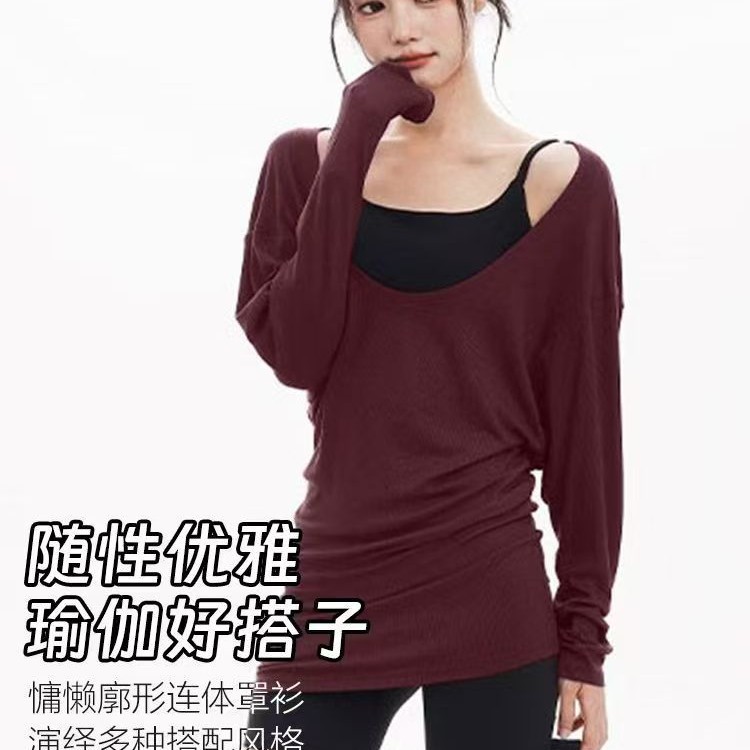 时尚大U领遮臀长袖T恤运动健身瑜伽宽松外穿收腰修身显瘦上衣女