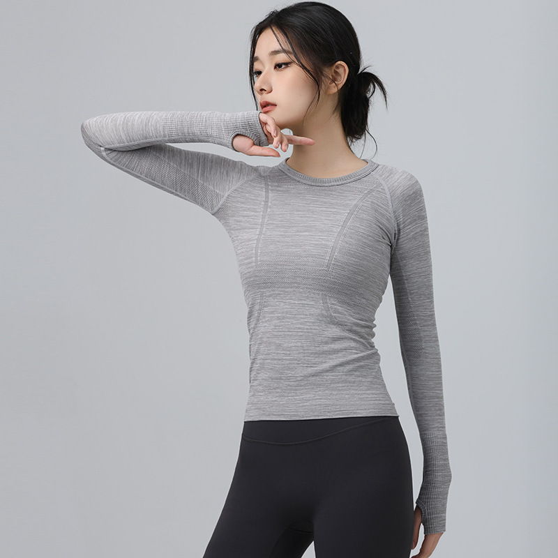 秋冬用ヨガ長袖トップス レディース シームレスワンピース ヨガウェア フィットネスウェア ピラティス 通気性 快適 タイトフィット