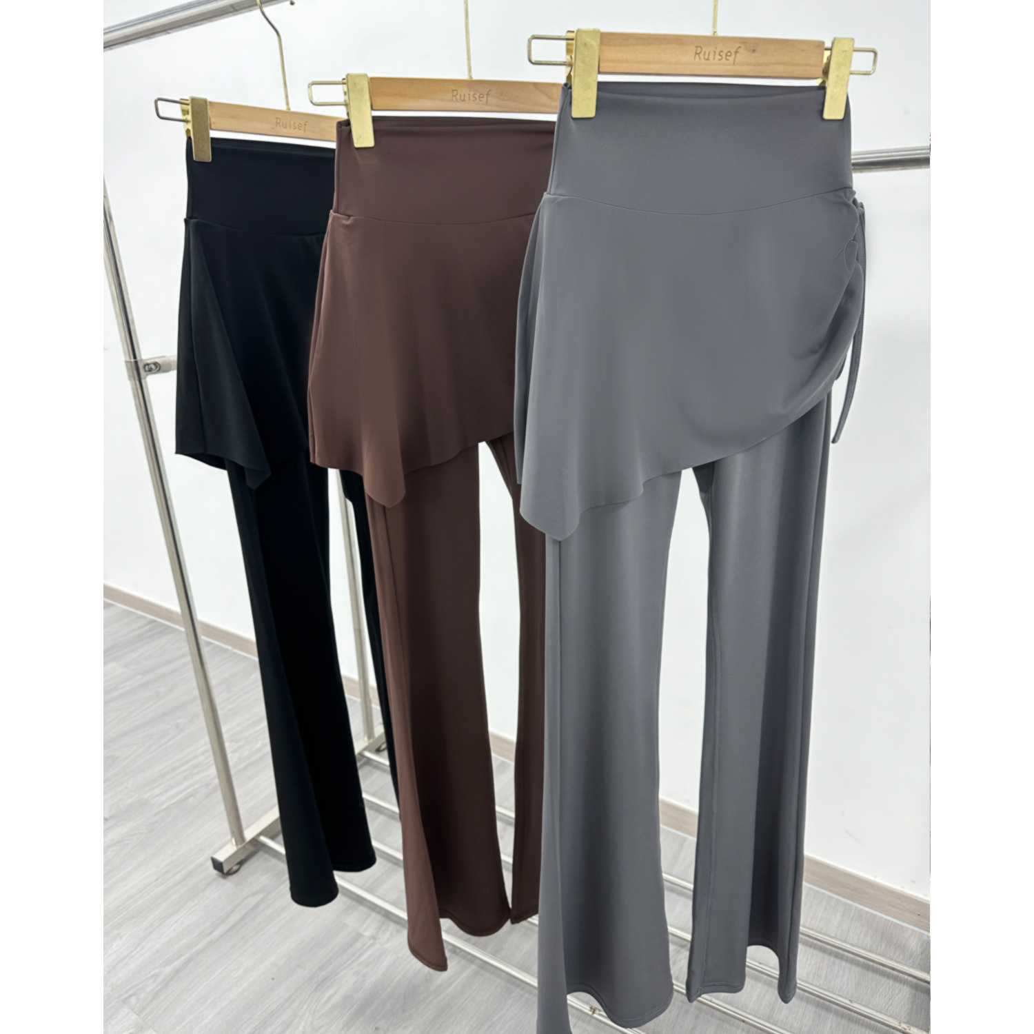 偽ツーピースヨガパンツ レディース ハイウエスト 着痩せ効果 マイクロフレア フィットネスパンツ サイドドローストリング トレーニング スポーツパンツ 高伸縮性 ヒップアップ