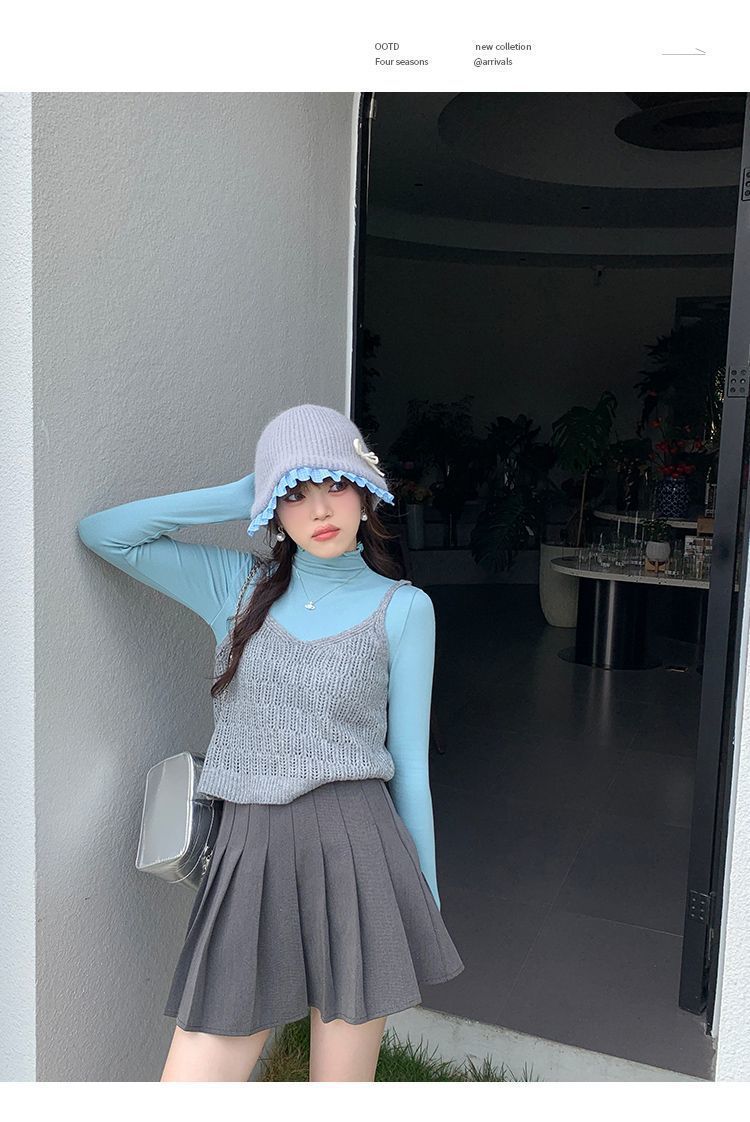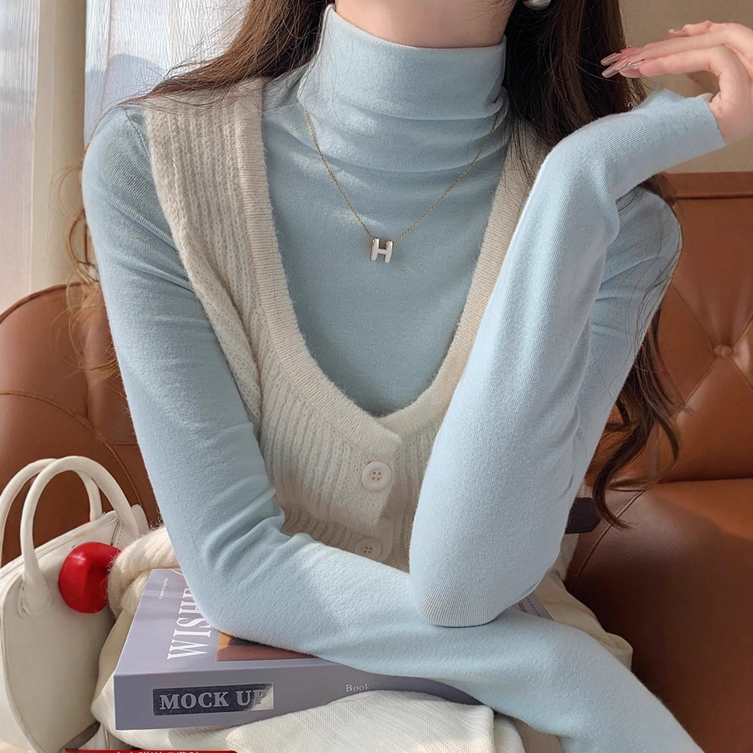 底のシャツの女性の秋冬の2024新型の高級感の洋気の半高襟のセーターの中でニットの長袖の上着の秋を掛けます。