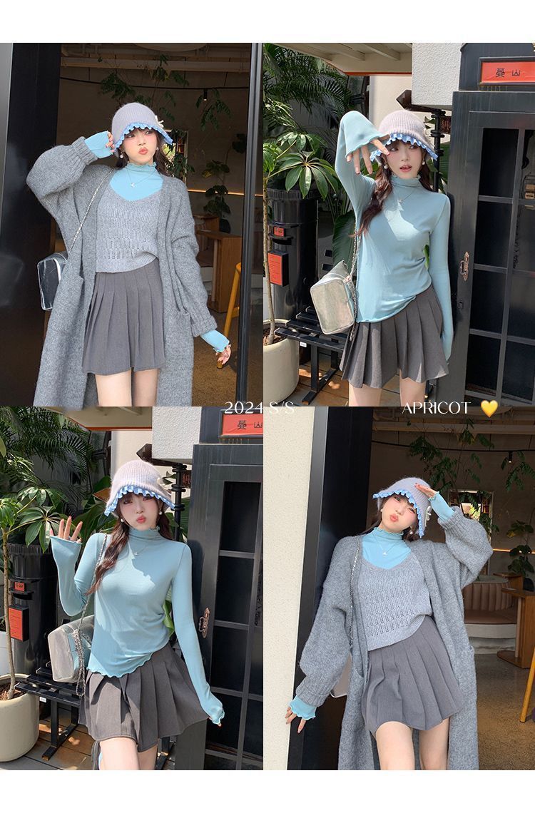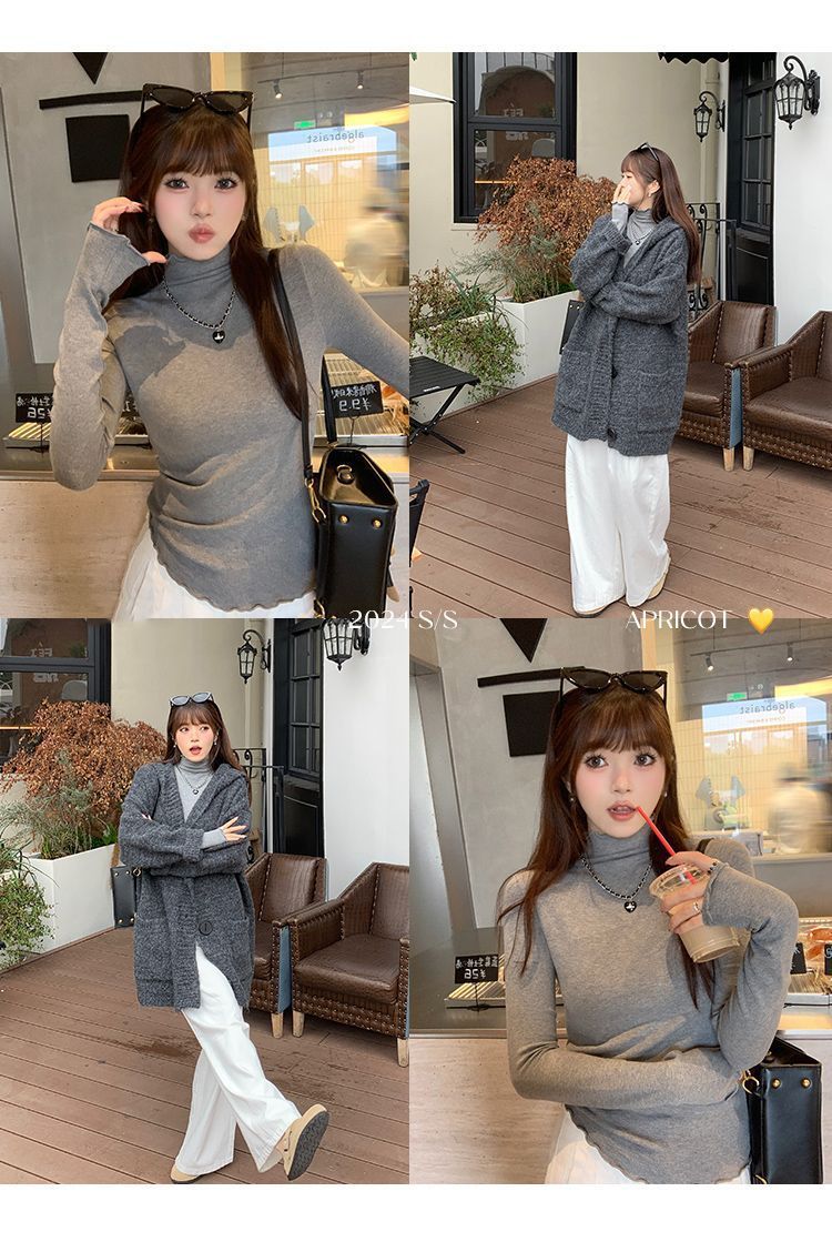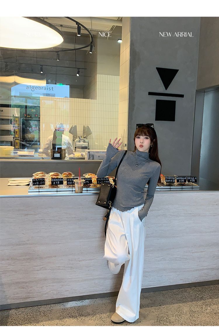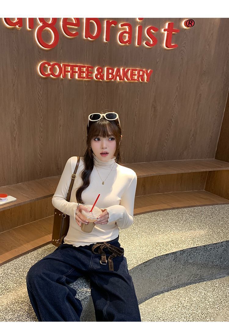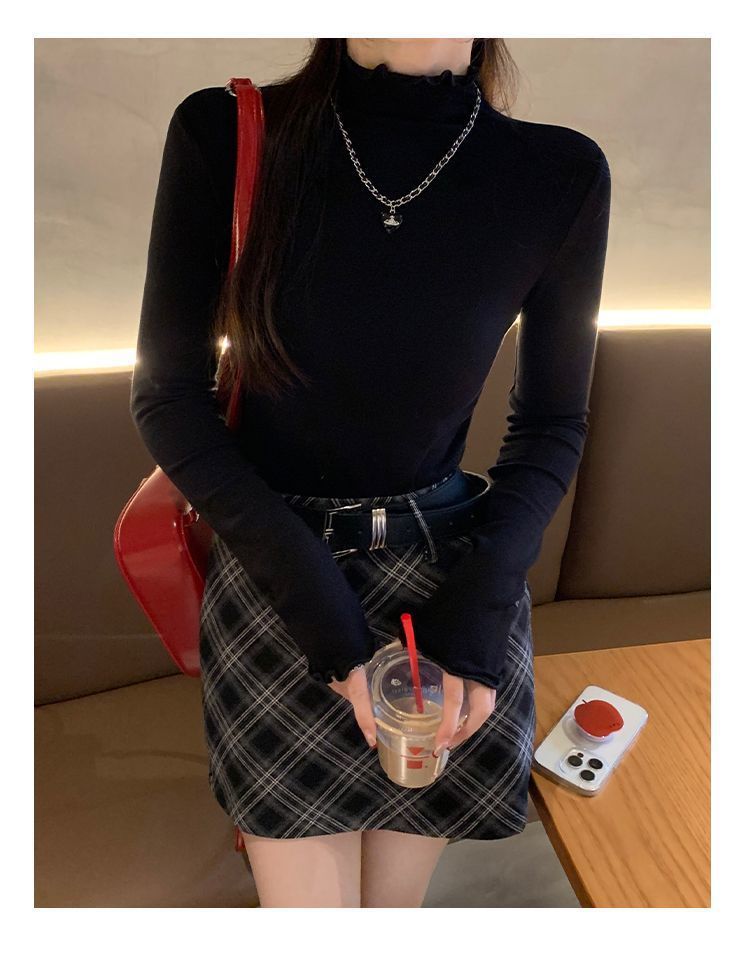 深灰色木耳花边半高领磨毛打底衫女士内搭秋冬高级感中领上衣