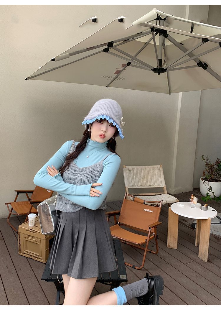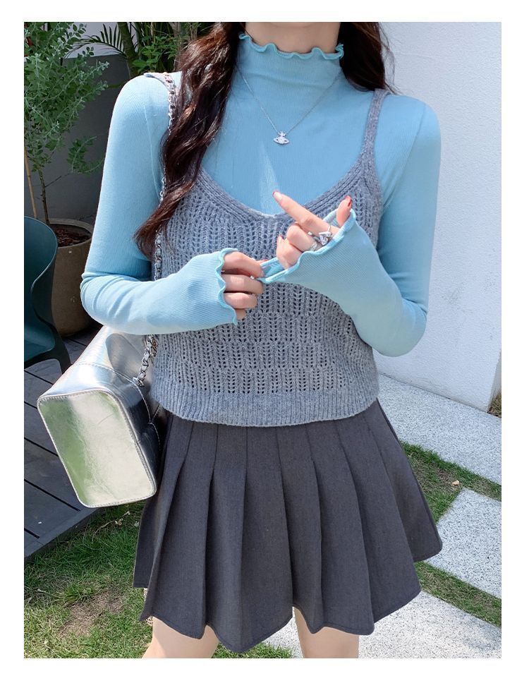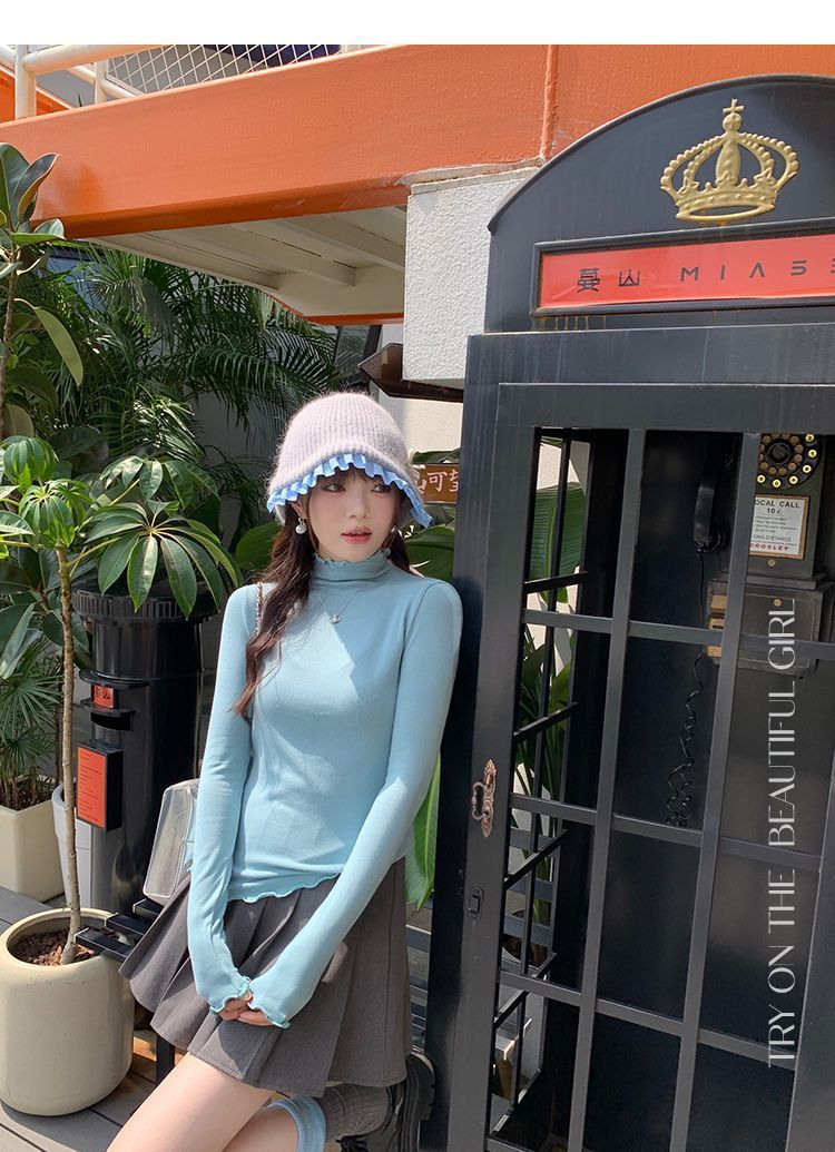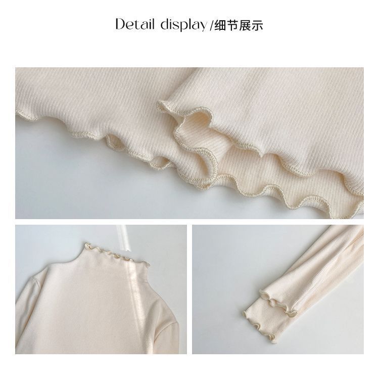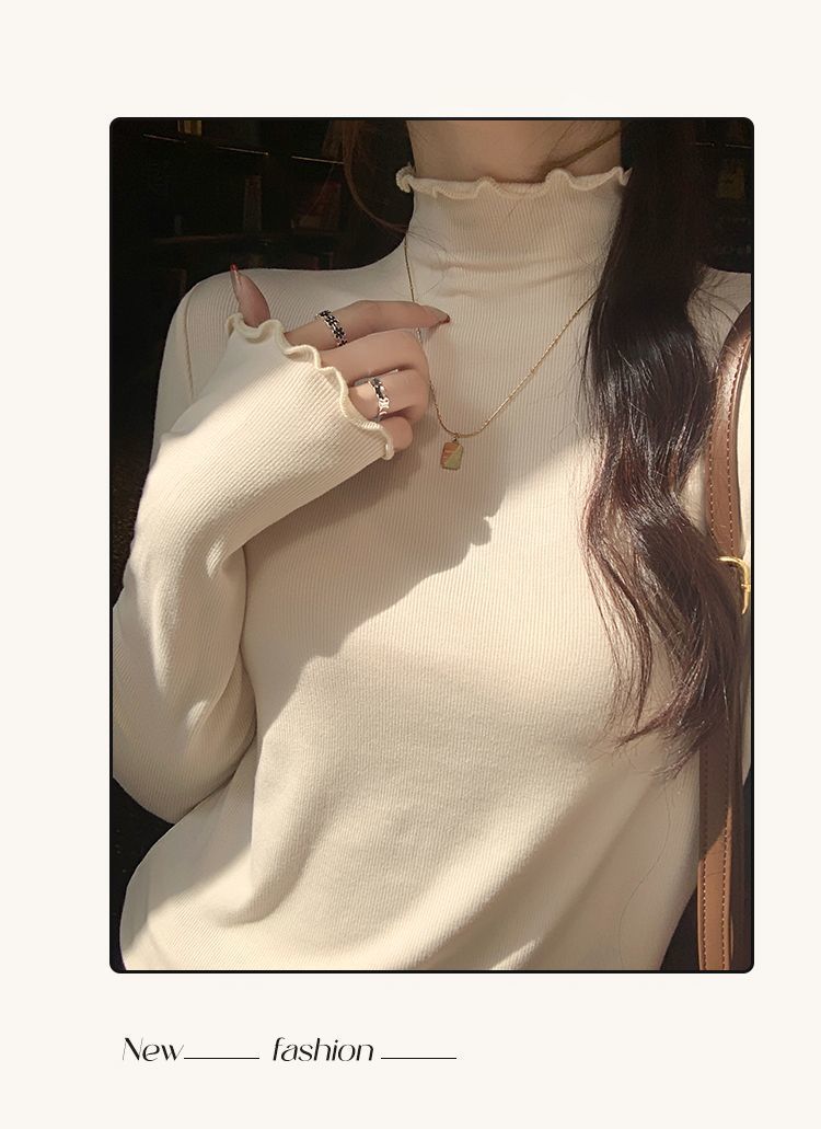 半高领针织打底衫女秋冬2025新款奶黄色毛衣高级感内搭木耳边上衣