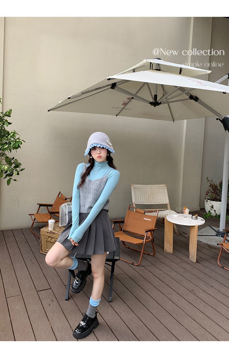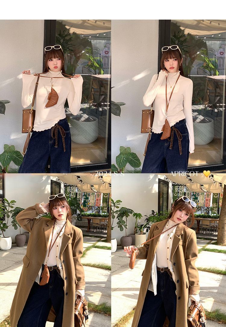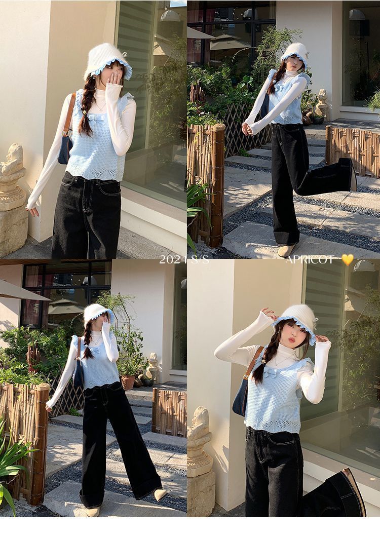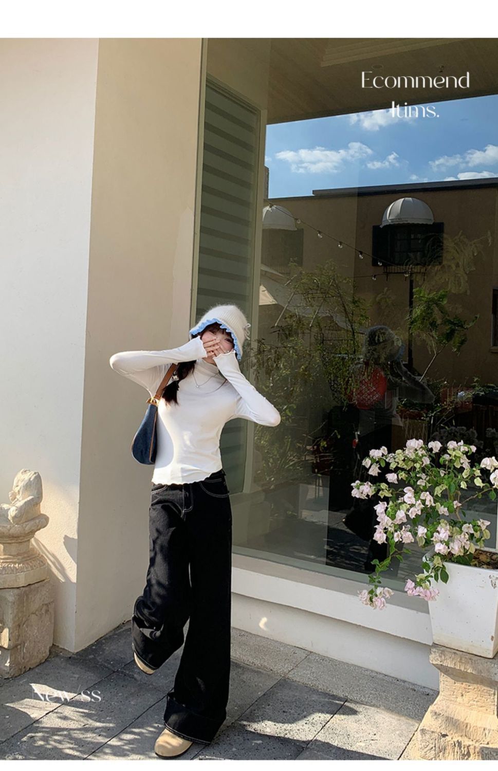 半高领针织打底衫女秋冬2025新款奶黄色毛衣高级感内搭木耳边上衣