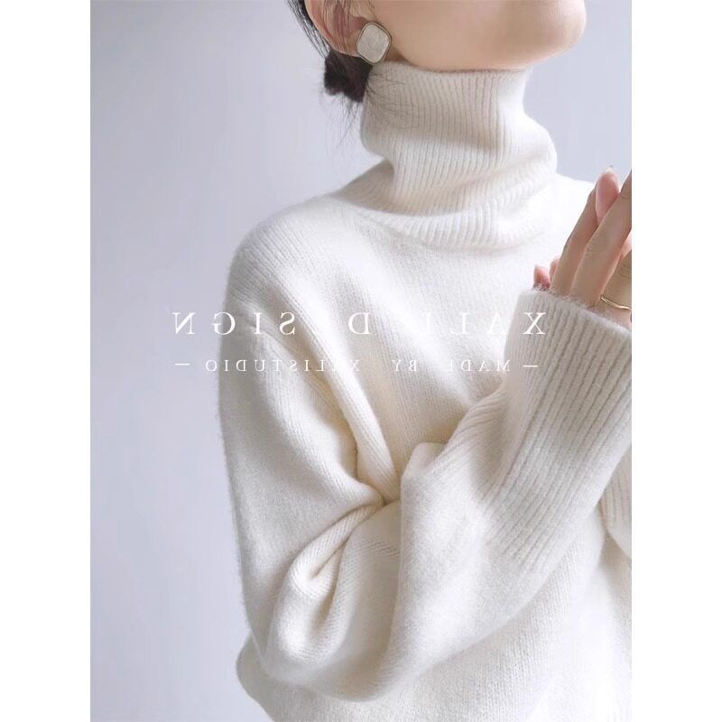 法式温柔软糯白色高领毛衣女秋冬宽松慵懒高级感堆堆领针织打底衫