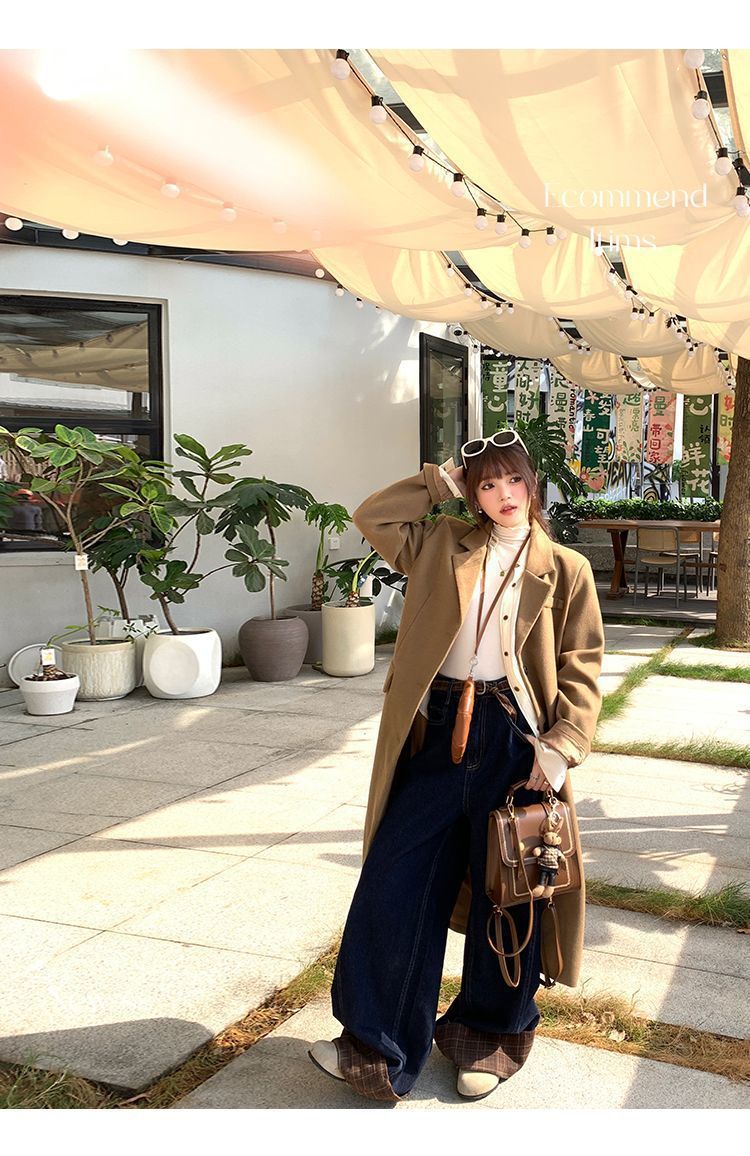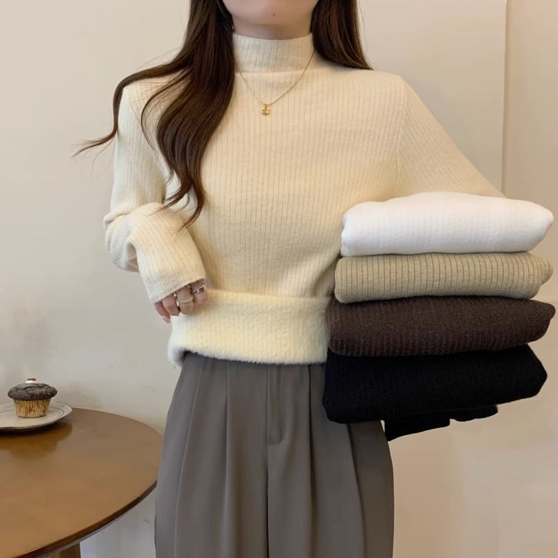 ベルベットは半高襟のセーターを厚くして、女性の春と秋冬の2024の新しい杏色のニットのシャツを着て、保温しています