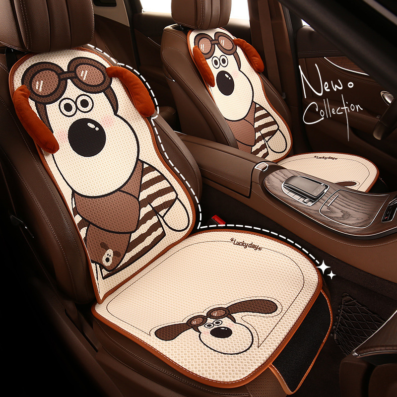 車のクッション通用の四季2024種類のアニメのかわいい子犬のシートカバーの女性の車内の半包みのシートクッション
