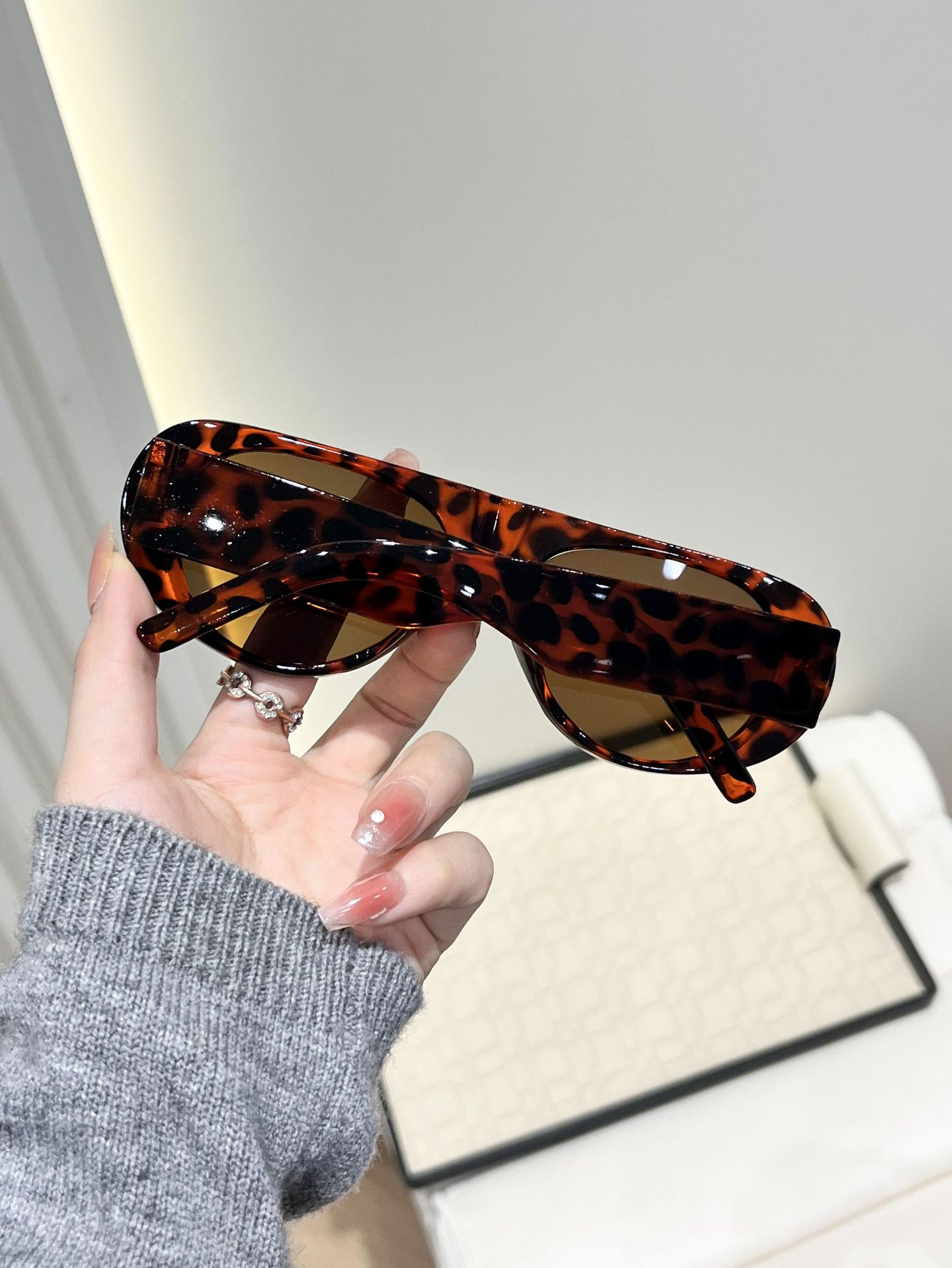 豹纹色太阳镜女款长方形时尚眼镜街头高级感网红潮流ins墨镜男士