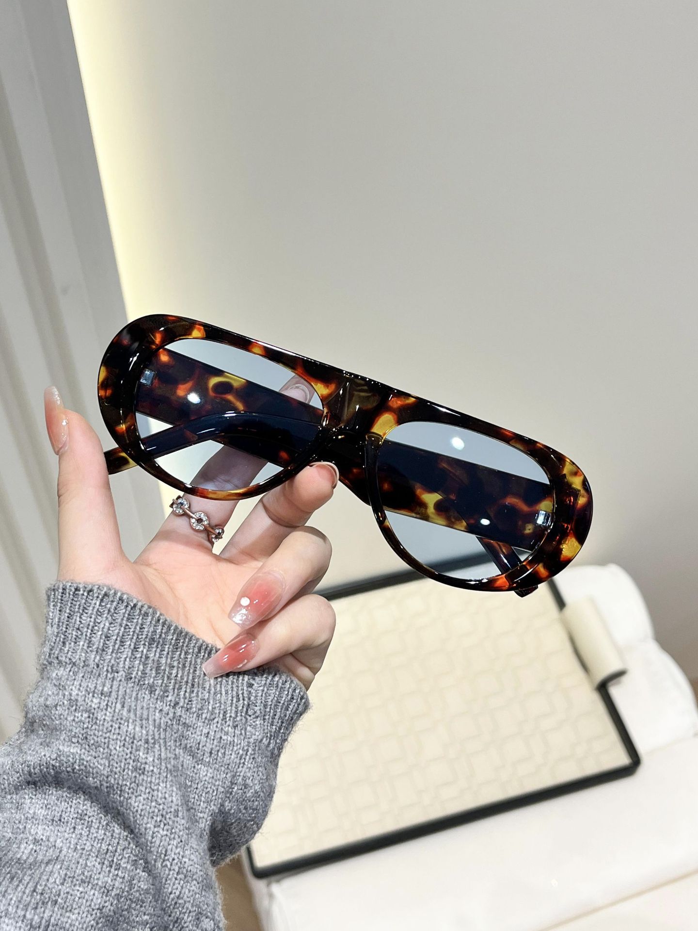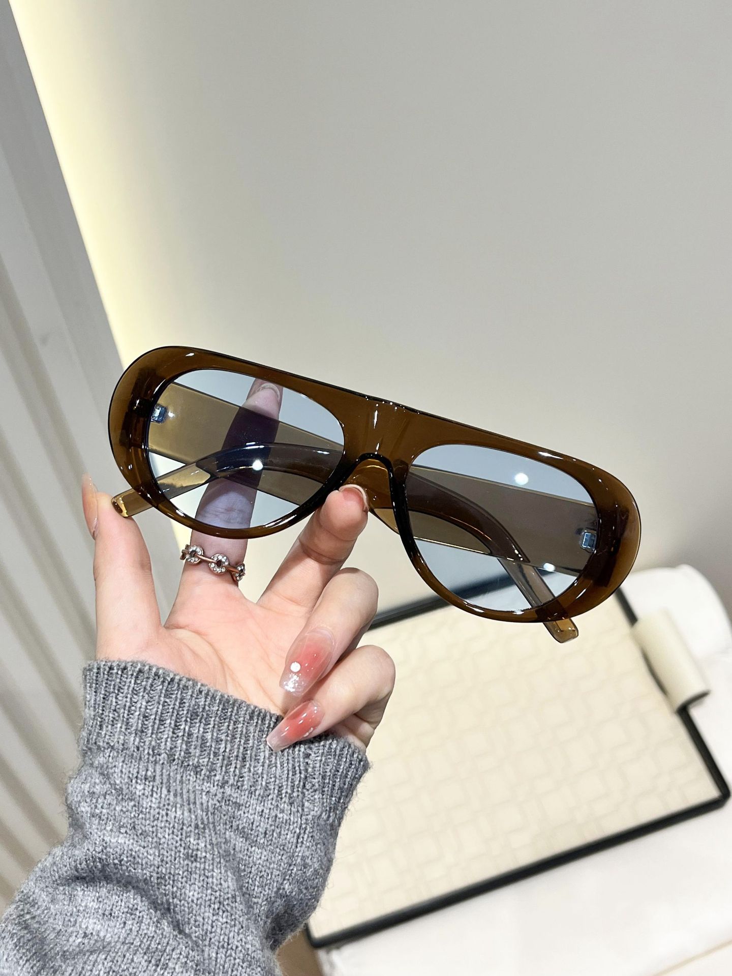 超大方枠サングラス女性2025クロスボーダー新商品個性厚鏡脚ネット赤トレンド街拍すっぴんサングラス