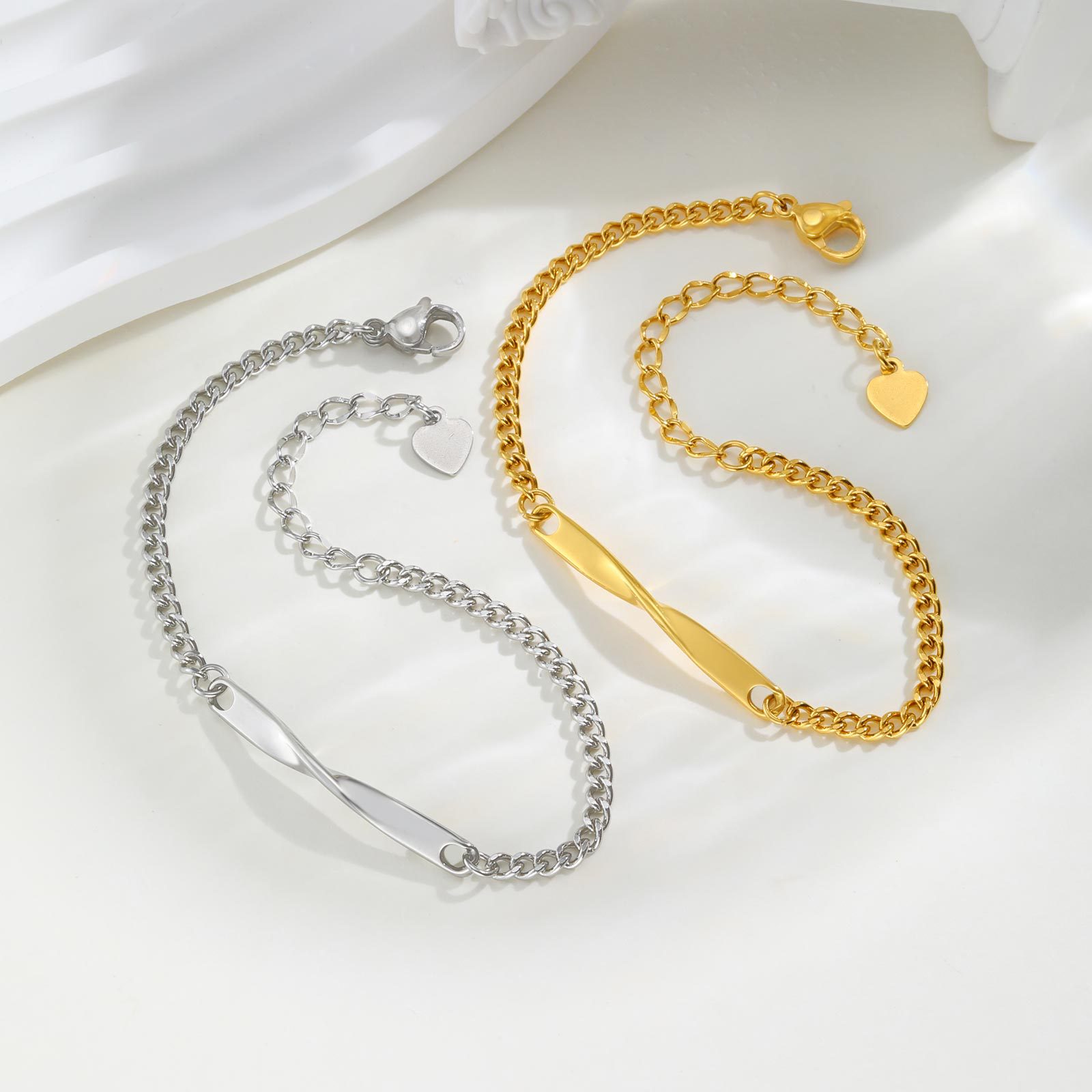 钛钢饰品在近年逐渐流行,它抗腐蚀耐高温硬度高,表面不会因为环境发生变化,长期佩戴都能够保持光泽与平滑。同时钛钢的金属光泽与铂金的光泽很接近,又具有现代感。钛钢饰品的保养与清洁也非常容易,不是在强酸、强碱环境下,根本都不需要特意保养,简单随意。钛钢制成的饰品具有良好的耐蚀性、耐热性,其硬度高于白银,适合加工造型简约的款式而不会有变形的困扰。在佩戴时比较重要的就是防止饰品被尖利物划伤,而破坏其表面光滑度。