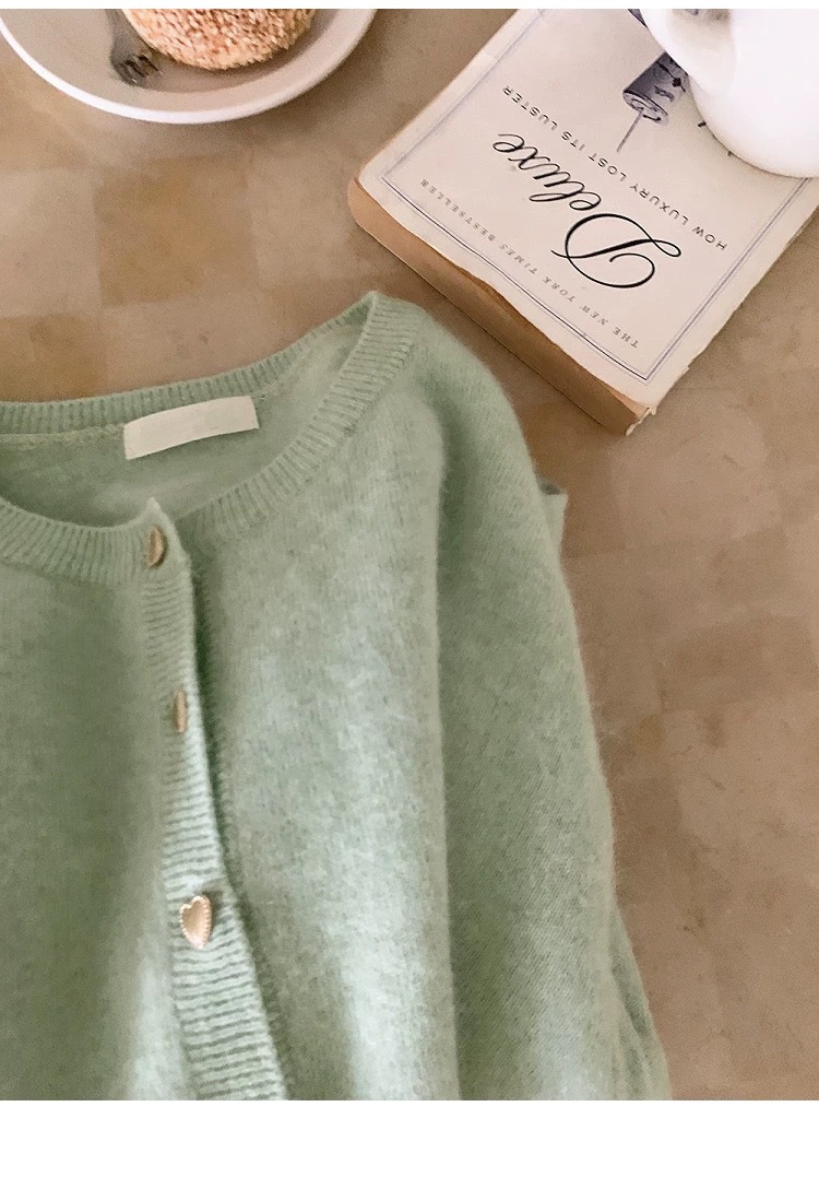 25秋冬ウールカーディガン レディース ゆったりショート丈セータージャケット ソフトでカジュアルなニットウェア 多用途 アボカドグリーン