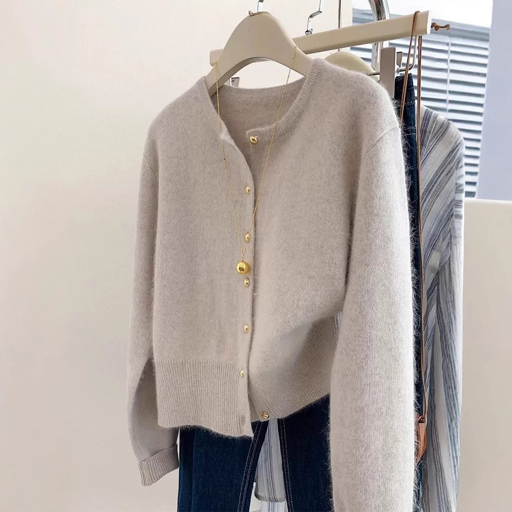 2025秋冬韓国東大門産カシミヤカーディガン レディース ラウンドネックセーター ウール厚手ニットジャケット 韓国風