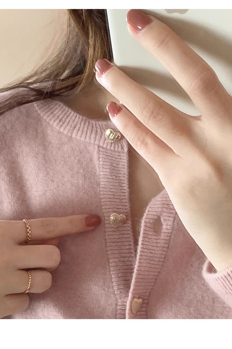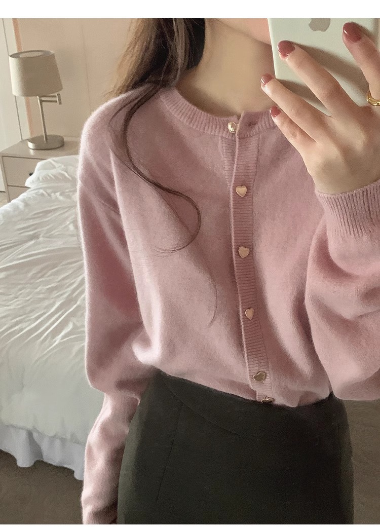 秋冬季温柔风爱心纽扣羊毛开衫外套女粉色毛衣显瘦百搭针织衫上衣