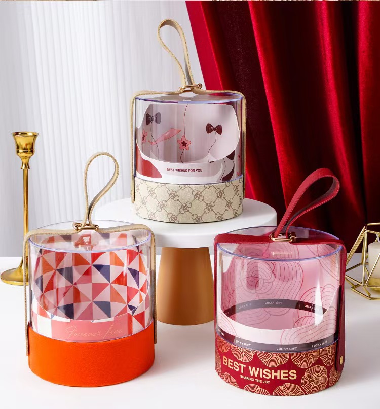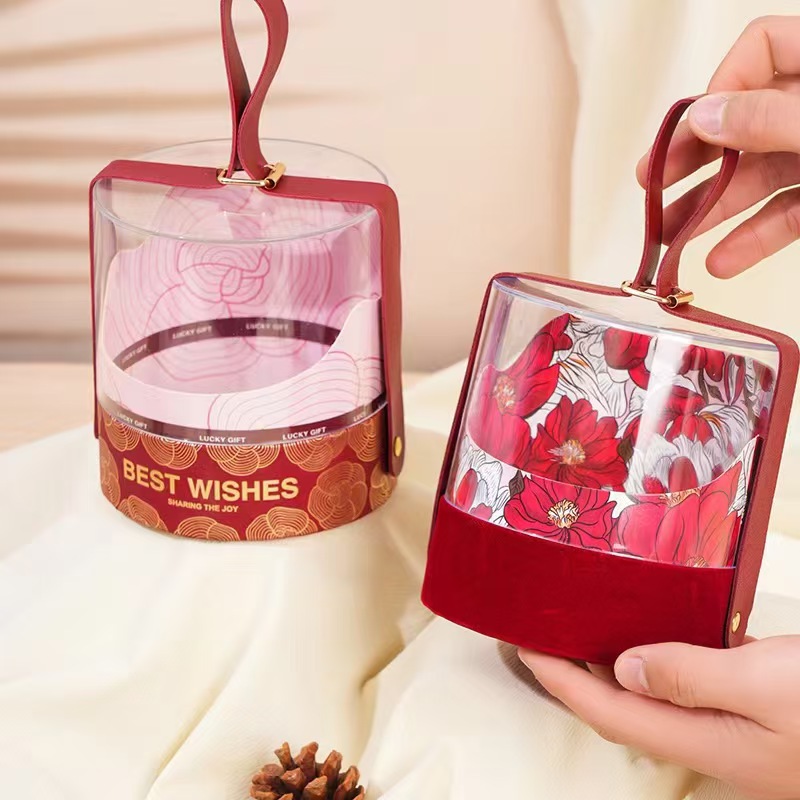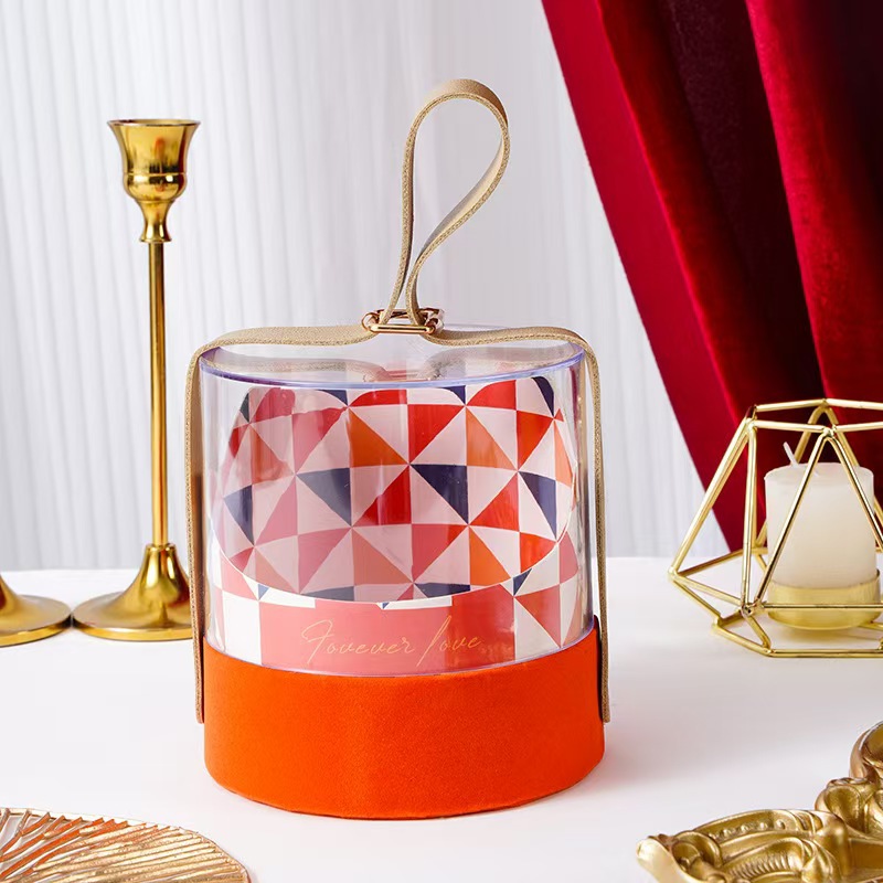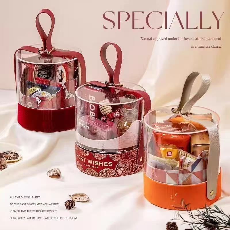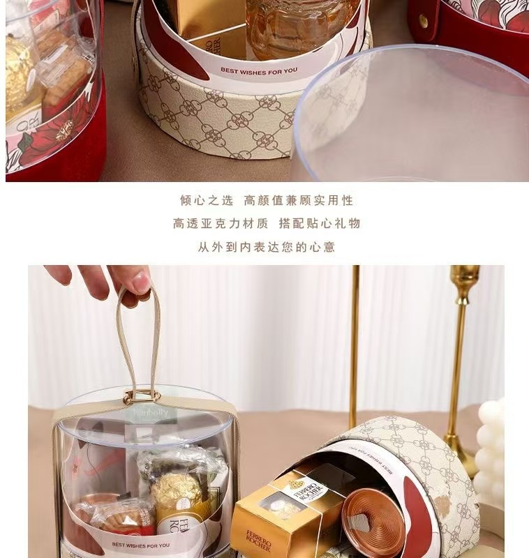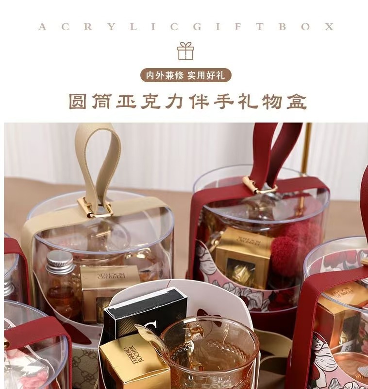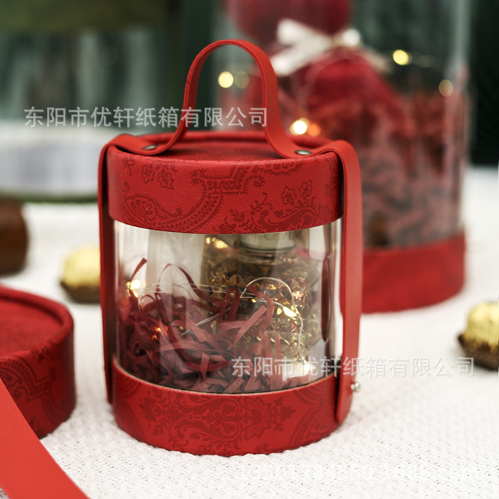 高级圆筒亚克力包装盒手提烘焙雪花酥牛轧糖蛋糕饼干年货礼盒批发