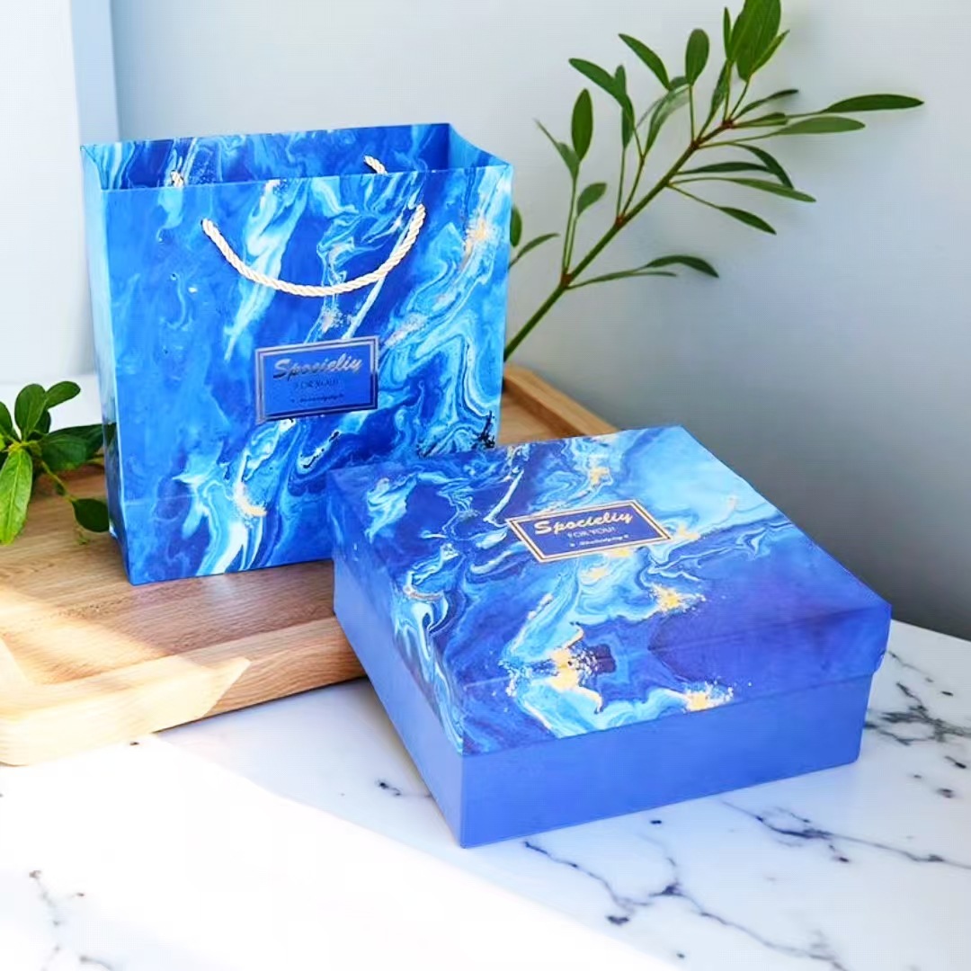 さまざまな休日の青い大理石のギフトボックス、誕生日、バレンタインデーのギフト包装、ギフトボックス、空箱、結婚式のお土産