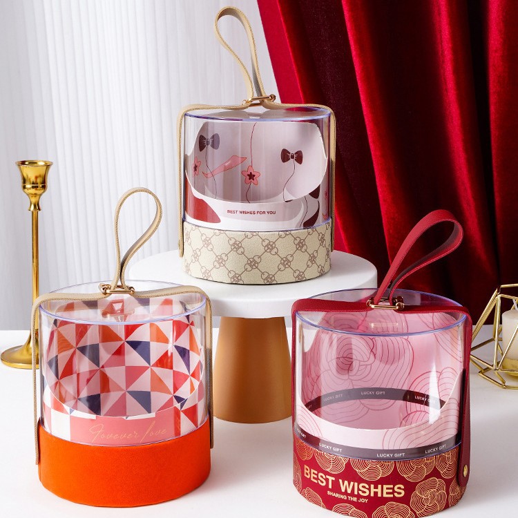 新款PVC 节日手提喜糖盒天地盖生日礼物包装盒透明抱抱桶工厂批发