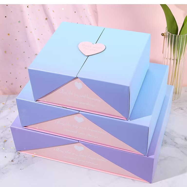バレンタインデーギフトボックスパープルダブルオープングラデーションラブギフトボックスハイエンド化粧品包装空箱スポット卸売
