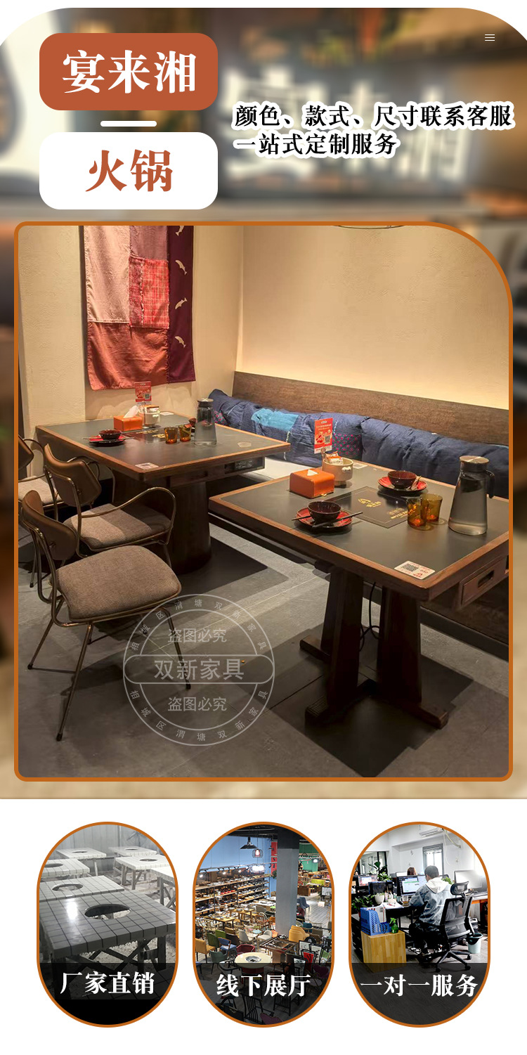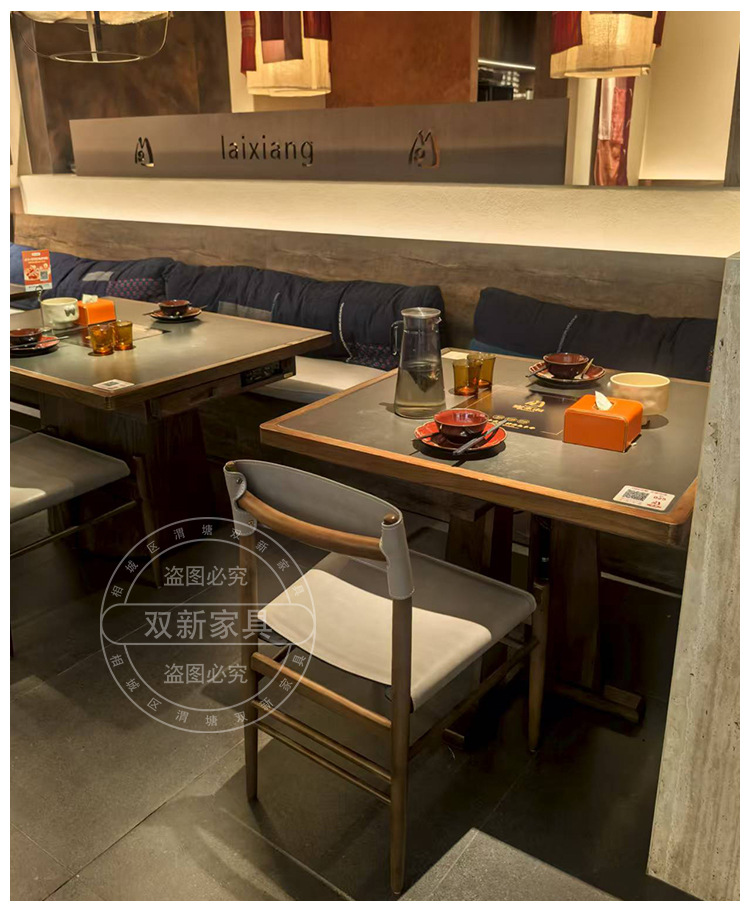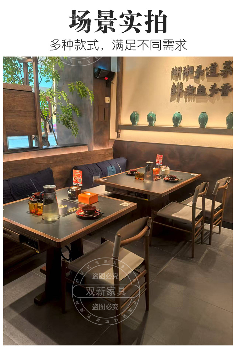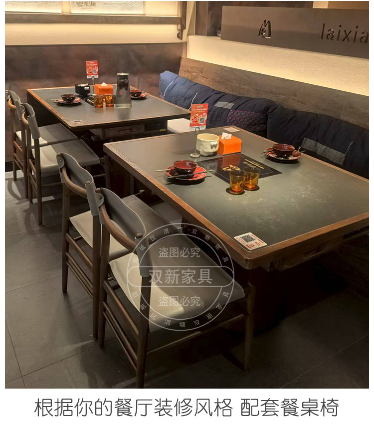 宴来湘山野风火锅桌中餐桌电磁炉一体商用网红餐馆桌椅卡座定制