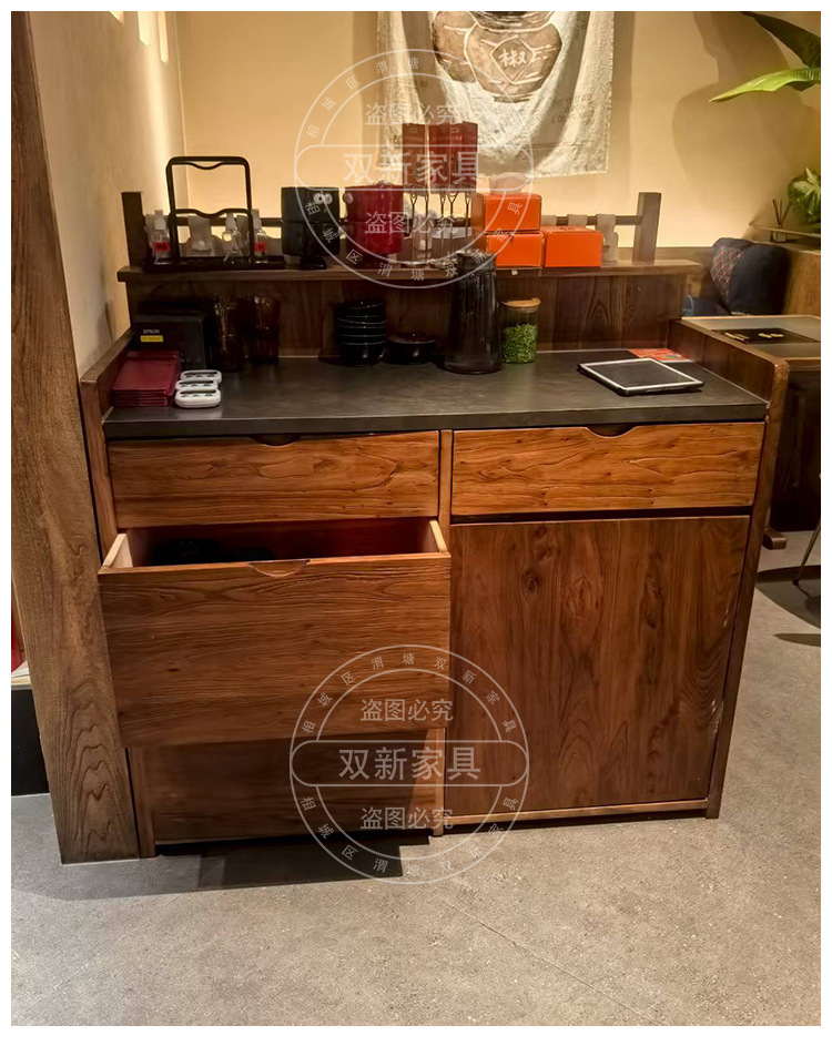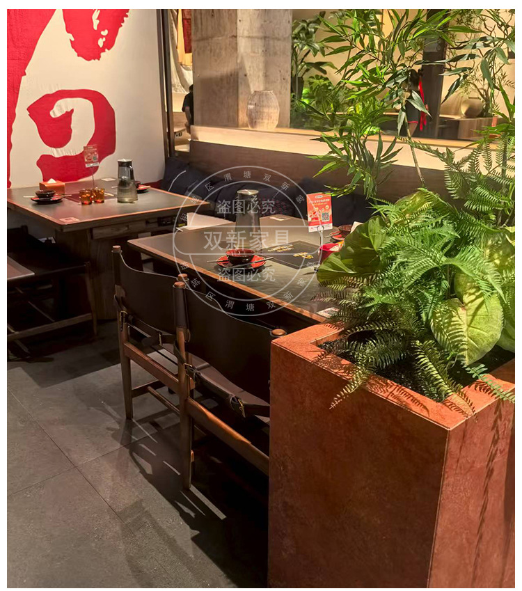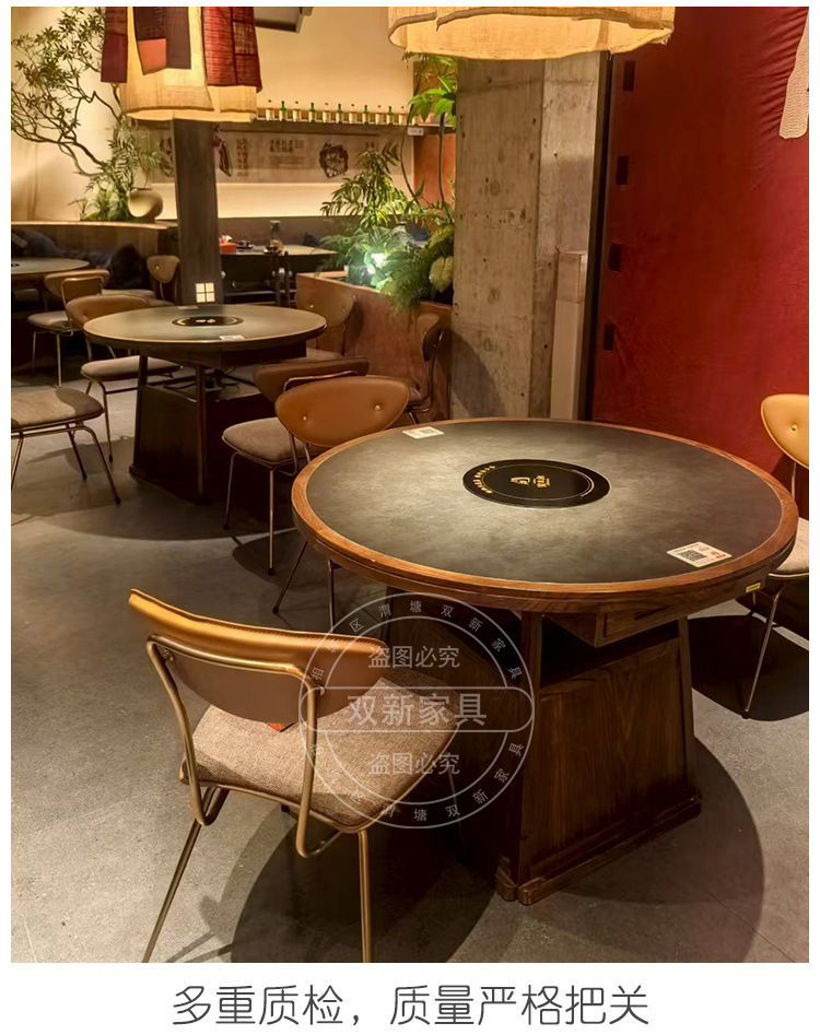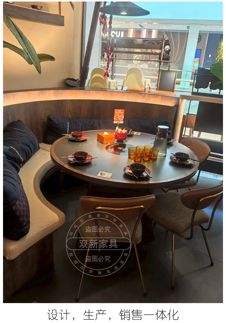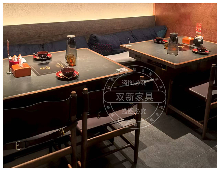 宴来湘山野风火锅桌中餐桌电磁炉一体商用网红餐馆桌椅卡座定制