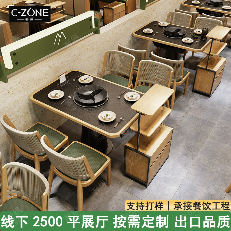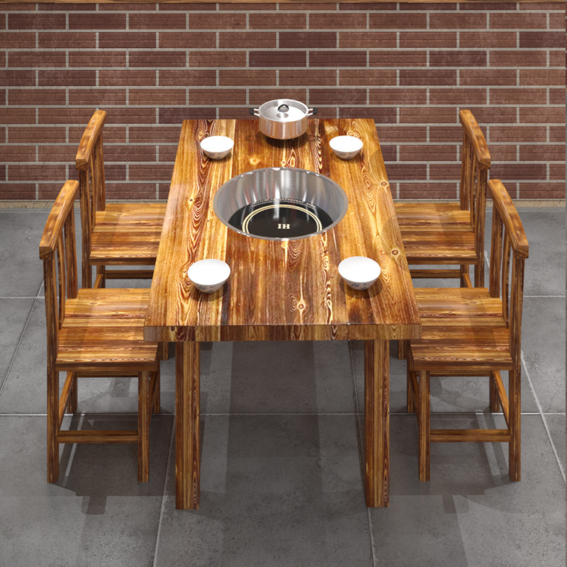 梅果山野風火鍋テーブルの中の食卓の電磁ストーブの一体業務用ネット赤レストランのテーブルと椅子のカードのオーダーメイドの組み合わせ