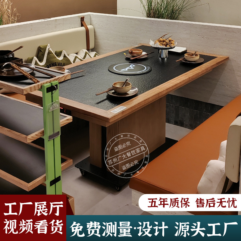 実木大理石火鍋テーブル商用中国式串香焼肉テーブル岩板鍋テーブル電磁ストーブ一体