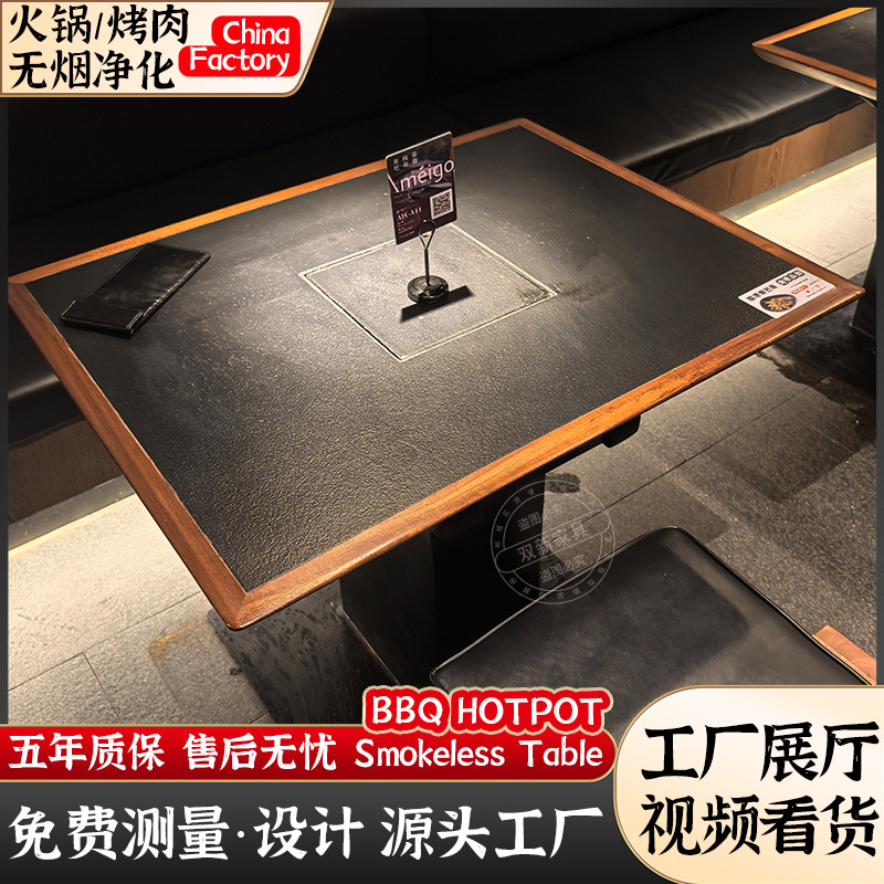 巴奴実木無煙浄化火鍋テーブル電磁炉一体下排煙浄化韓国式焼肉テーブルと椅子業務用