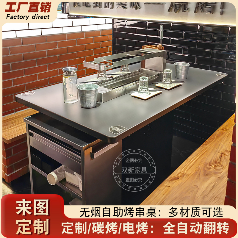 昔、無煙ステンレス製の串焼きテーブルが自動的に一体炭素をひっくり返してタバコを焼く店のテーブルが業務用だった