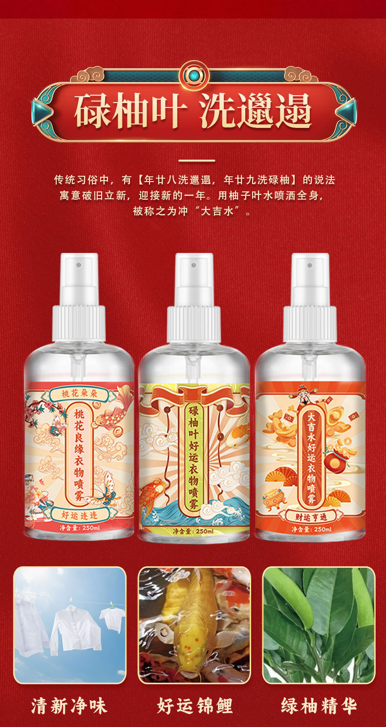 Fuyu Gonglu Pomelo Leaf 幸運の衣類スプレー 富と幸運を引き寄せる 桃の花 幸運の水 Pomelo Leaf 消臭衣類の香り