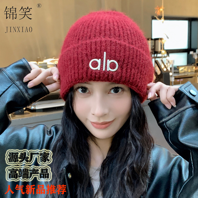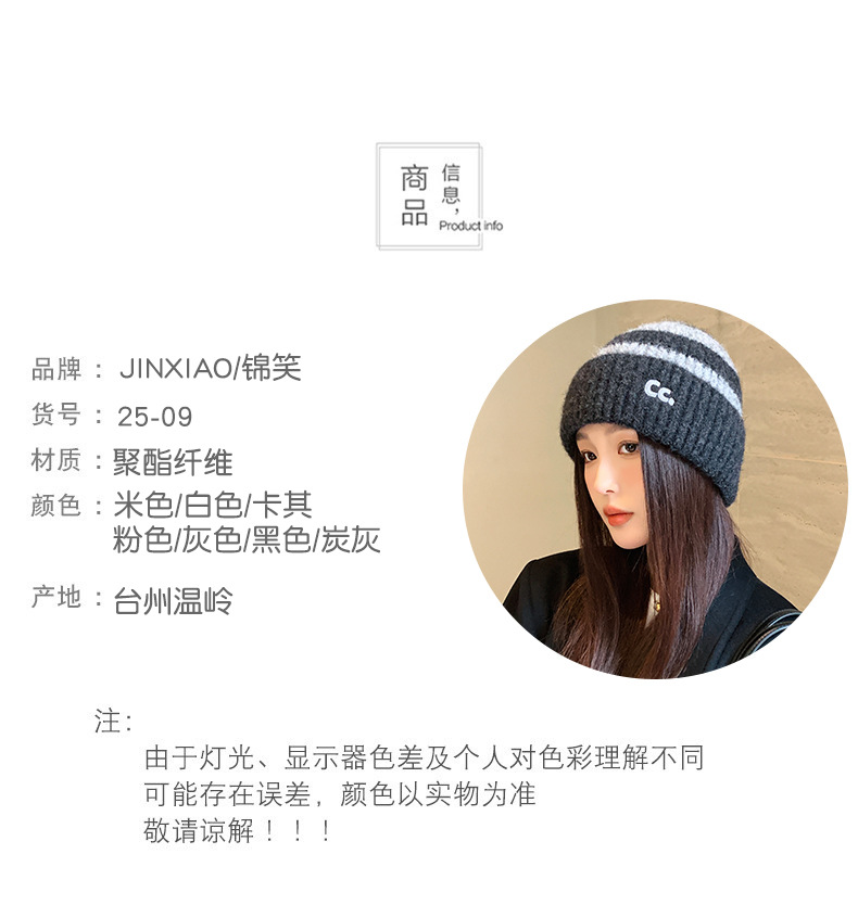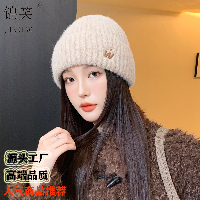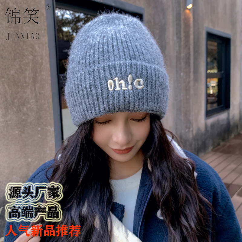 新款字母刺绣针织帽女秋冬保暖护耳毛线帽子显脸小百搭包头帽冷帽
