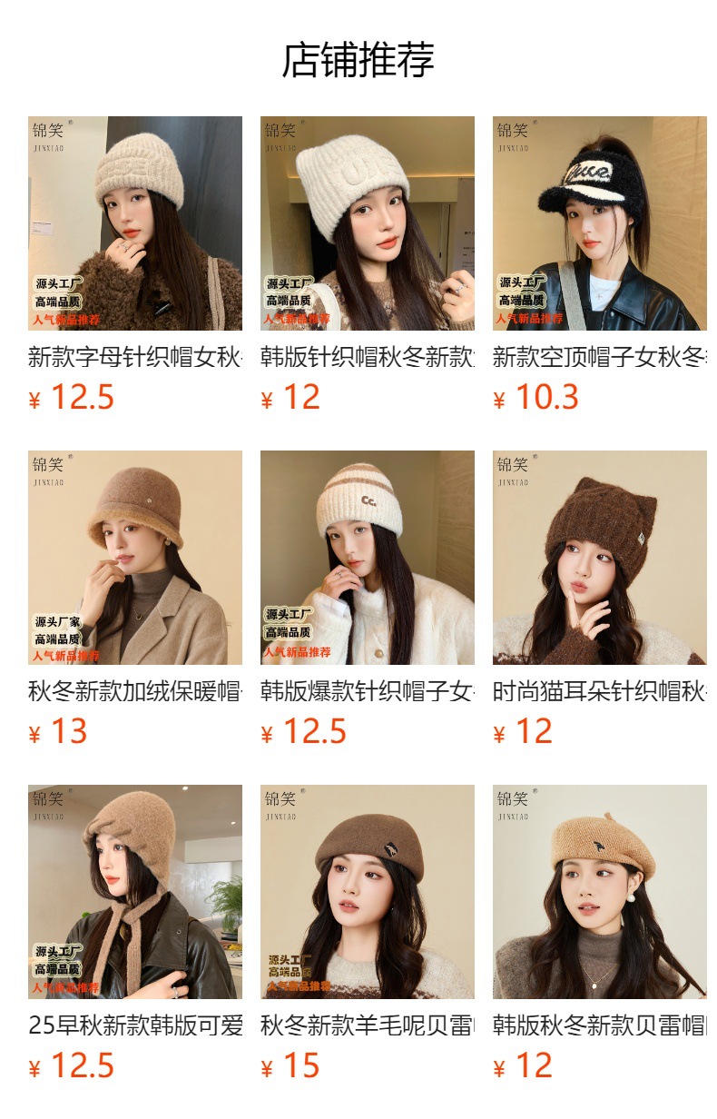 可爱减龄毛绒大毛球加厚保暖毛线帽子女秋冬休闲百搭加绒针织潮帽