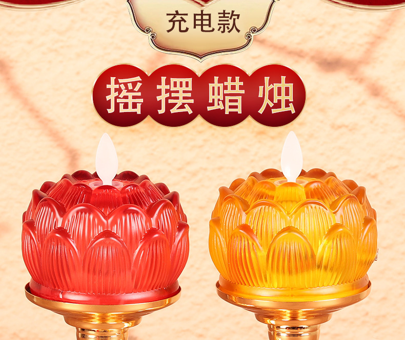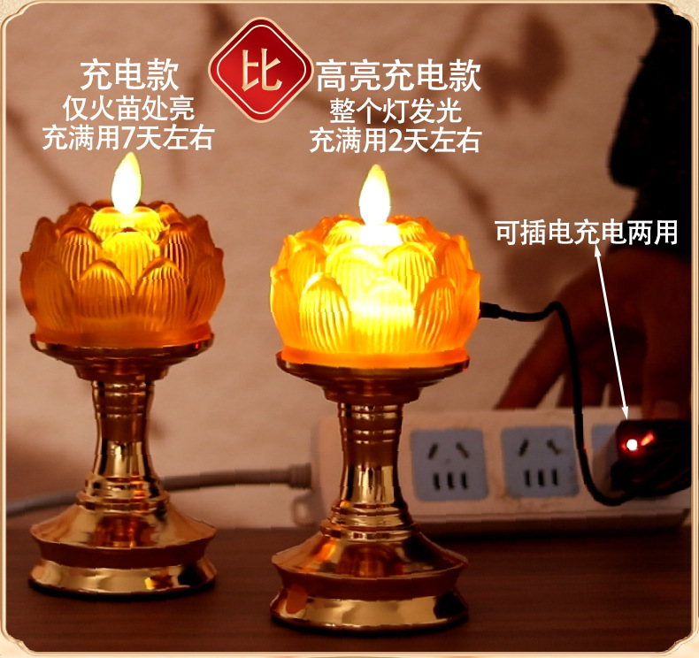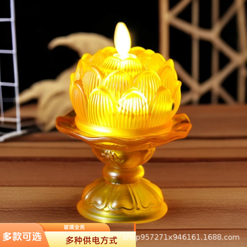 新型led電子ろうそく灯シミュレーション瑠璃燭台蓮灯電池充電led仏陀台前供仏灯