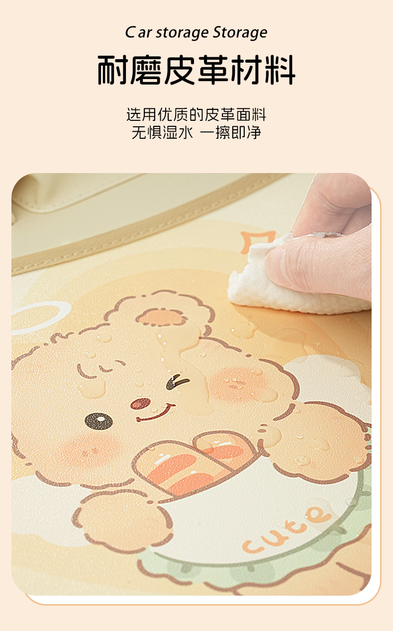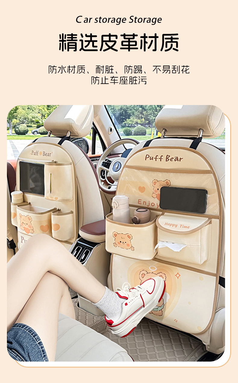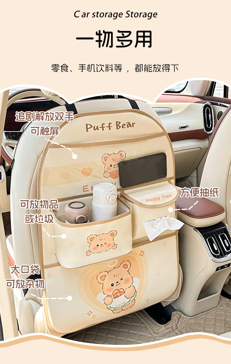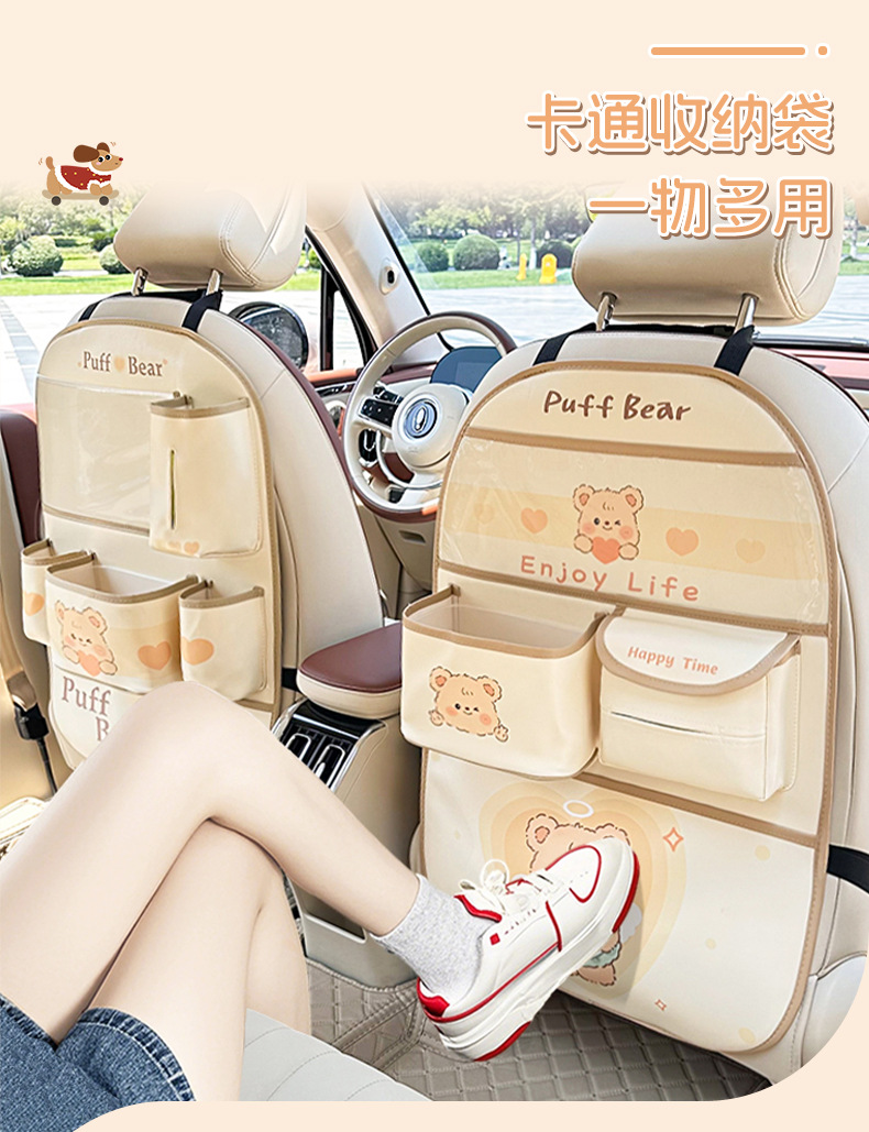 カーシート背収纳袋可爱いシュークリームベアカーレザー置物挂け袋多机能物置ケース