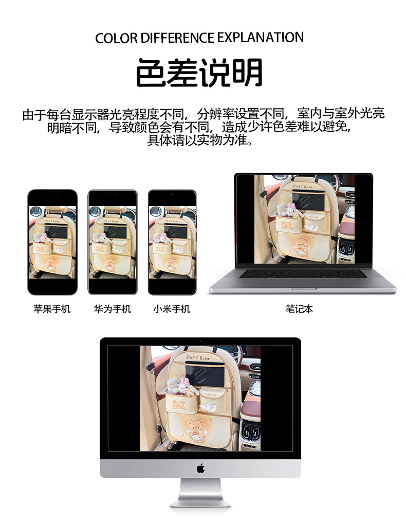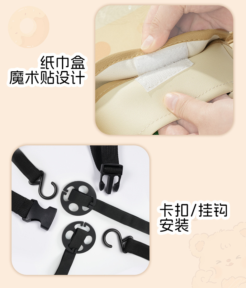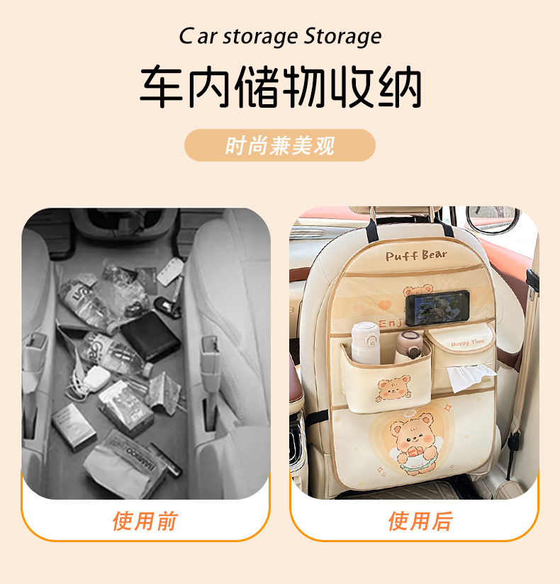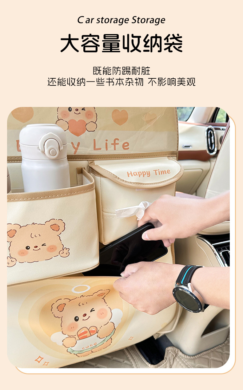 カーシート背収纳袋可爱いシュークリームベアカーレザー置物挂け袋多机能物置ケース