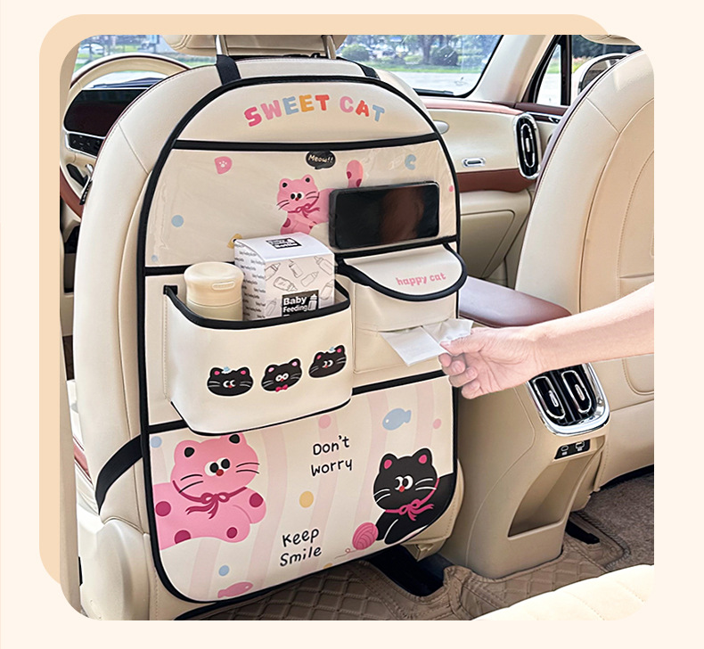 車の背もたれのシートの収納袋の漫画の猫の車載式の収納袋のかわいいアイデアの多機能の収納箱