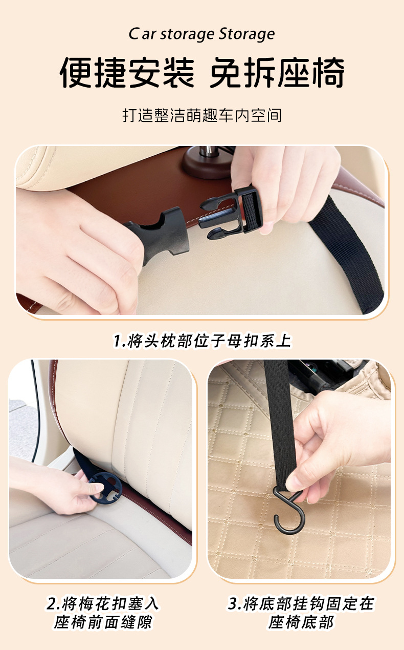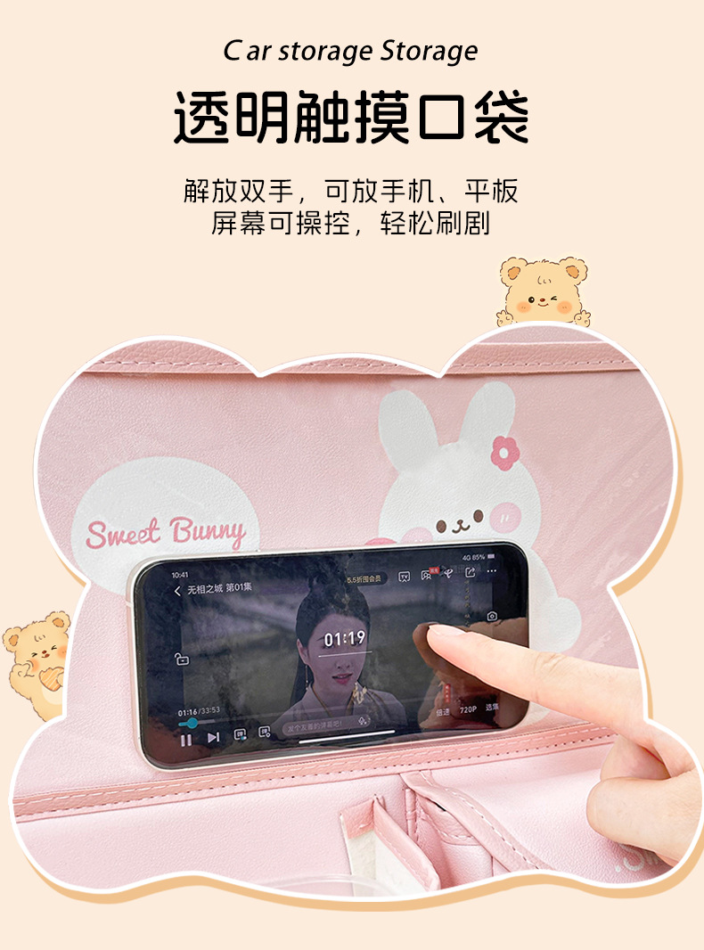 カーシート后背収纳袋可爱いチューリップくまうさぎ車載置物掛け袋多机能食卓置物ケース