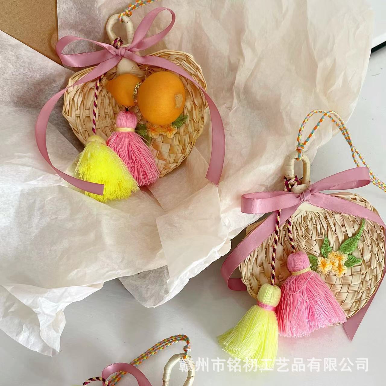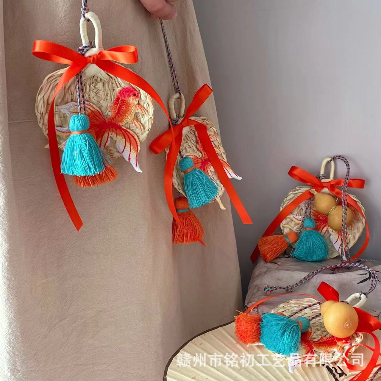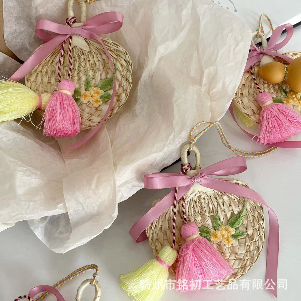 2025端午の節句にミニ蒲扇と箕の車を飾ってツバメの香嚢を掛けて車のペンダントを飾ってお土産をします。