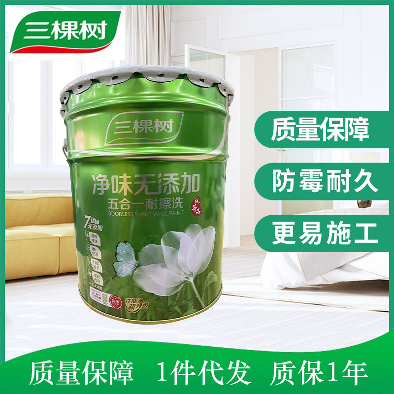 三棵树净味五合一乳胶漆内墙涂料白色多功能墙面漆清新环保涂料