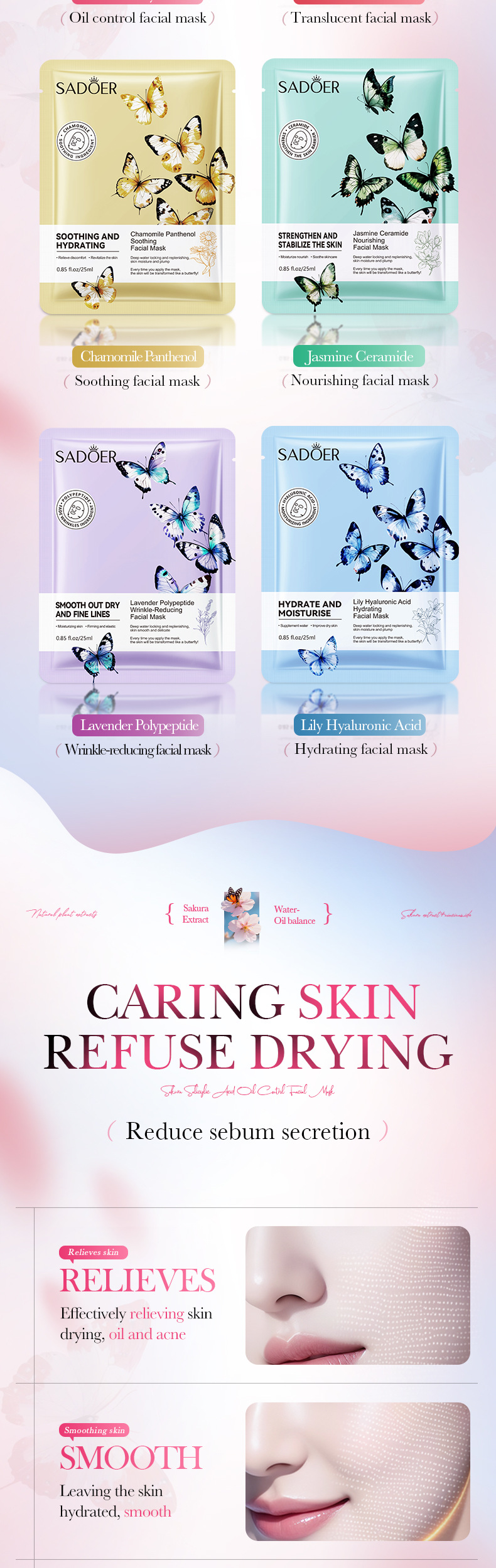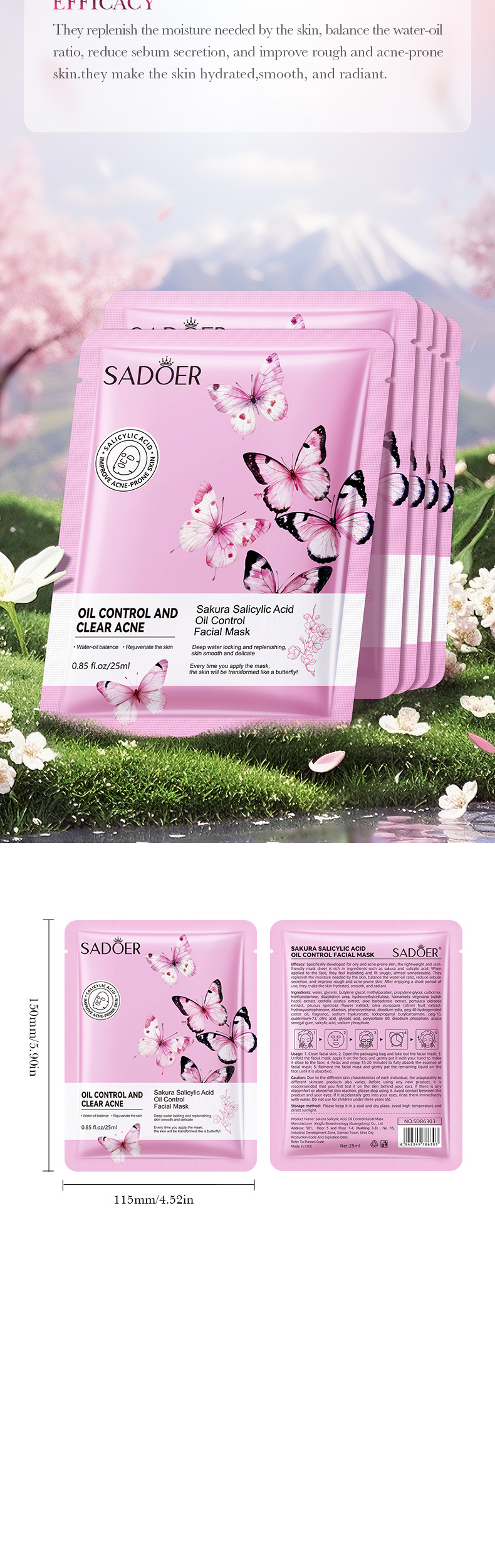 跨境现货水杨酸控油面膜SADOER樱花滋润补水保湿面膜外贸工厂直销
