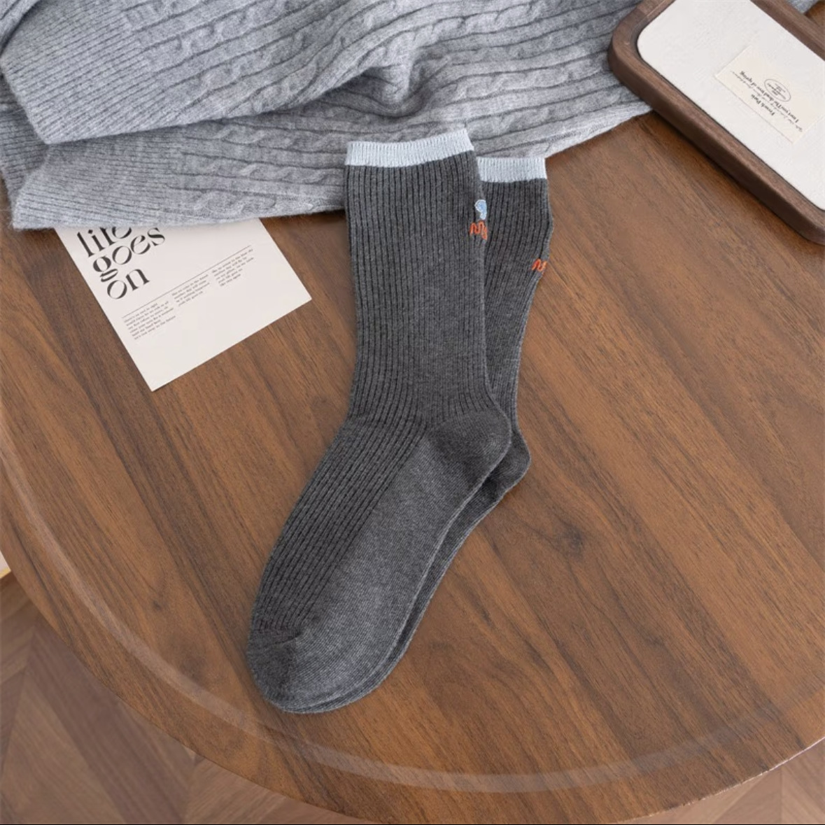 秋新款撞色条纹女中筒袜简约百搭秋冬保暖搭配堆堆袜千禧ins风